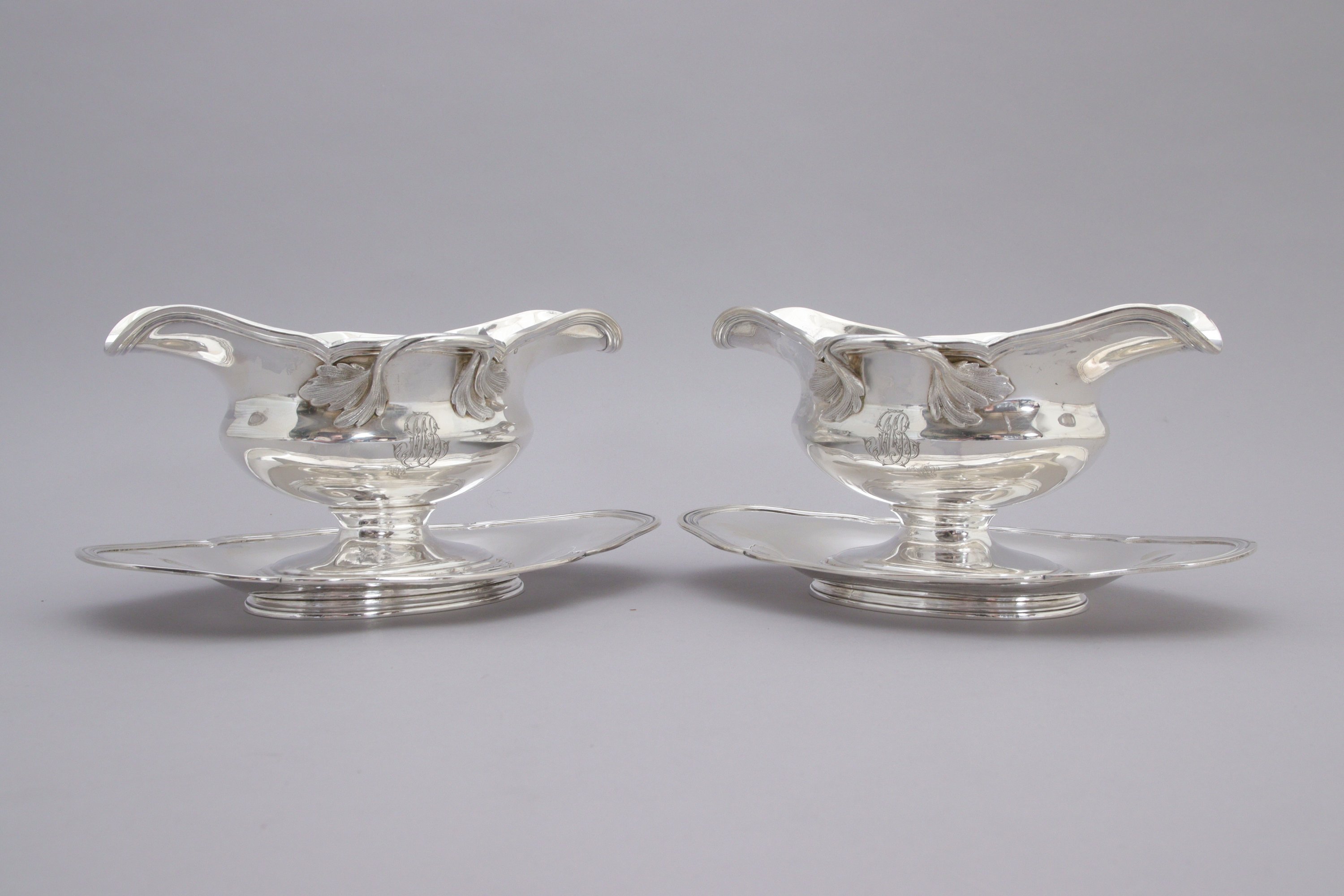 PAIRE de SAUCIÈRES et leurs plateaux fixes en argent, modèle...