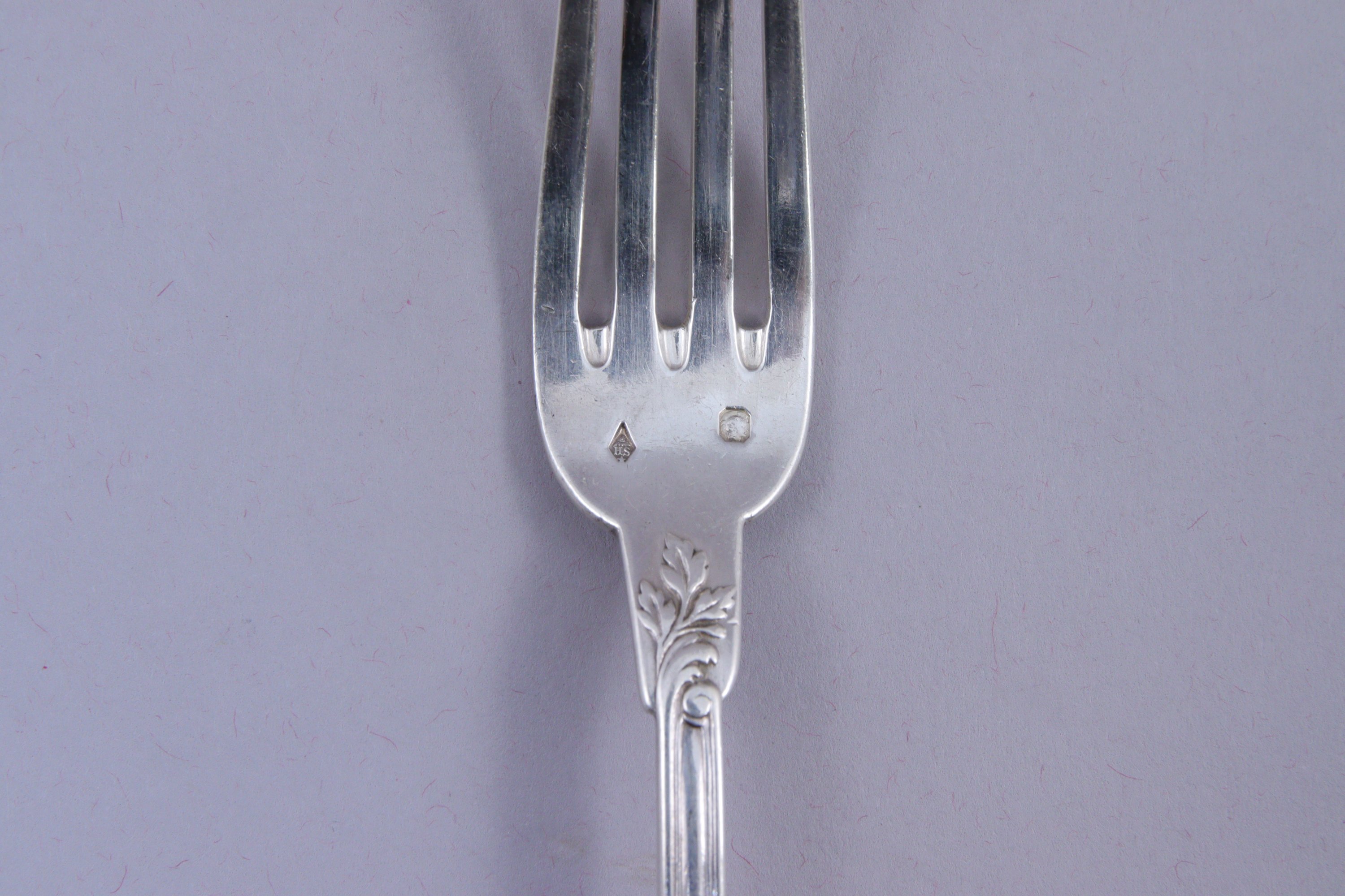 - Deux FOURCHETTES, en argent, l'une modèle filet, l'autre modèle uniplat. L'une poinçon Vieillard l'autre poinçon Minerve. Poids 100 g.