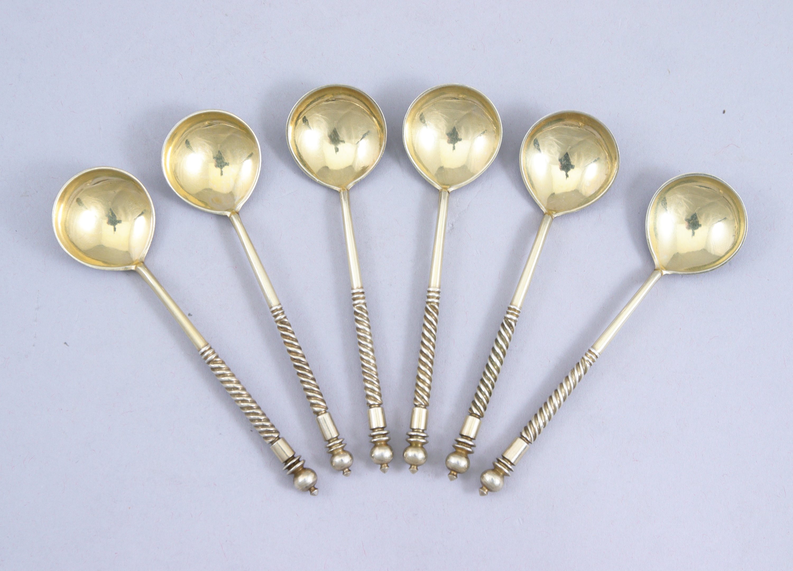RUSSIE, SIX petites CUILLERS en argent, le dos du cuilleron...