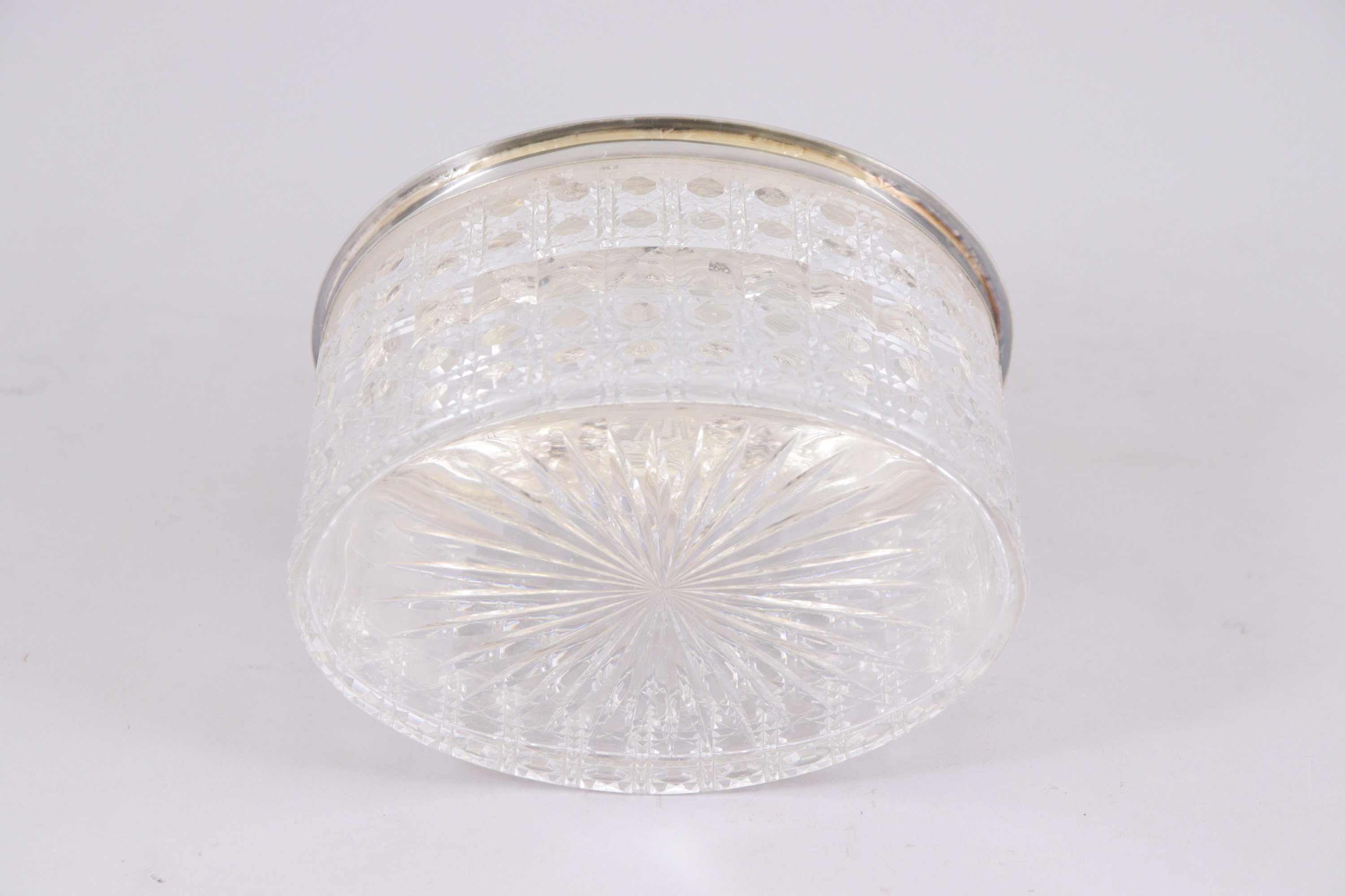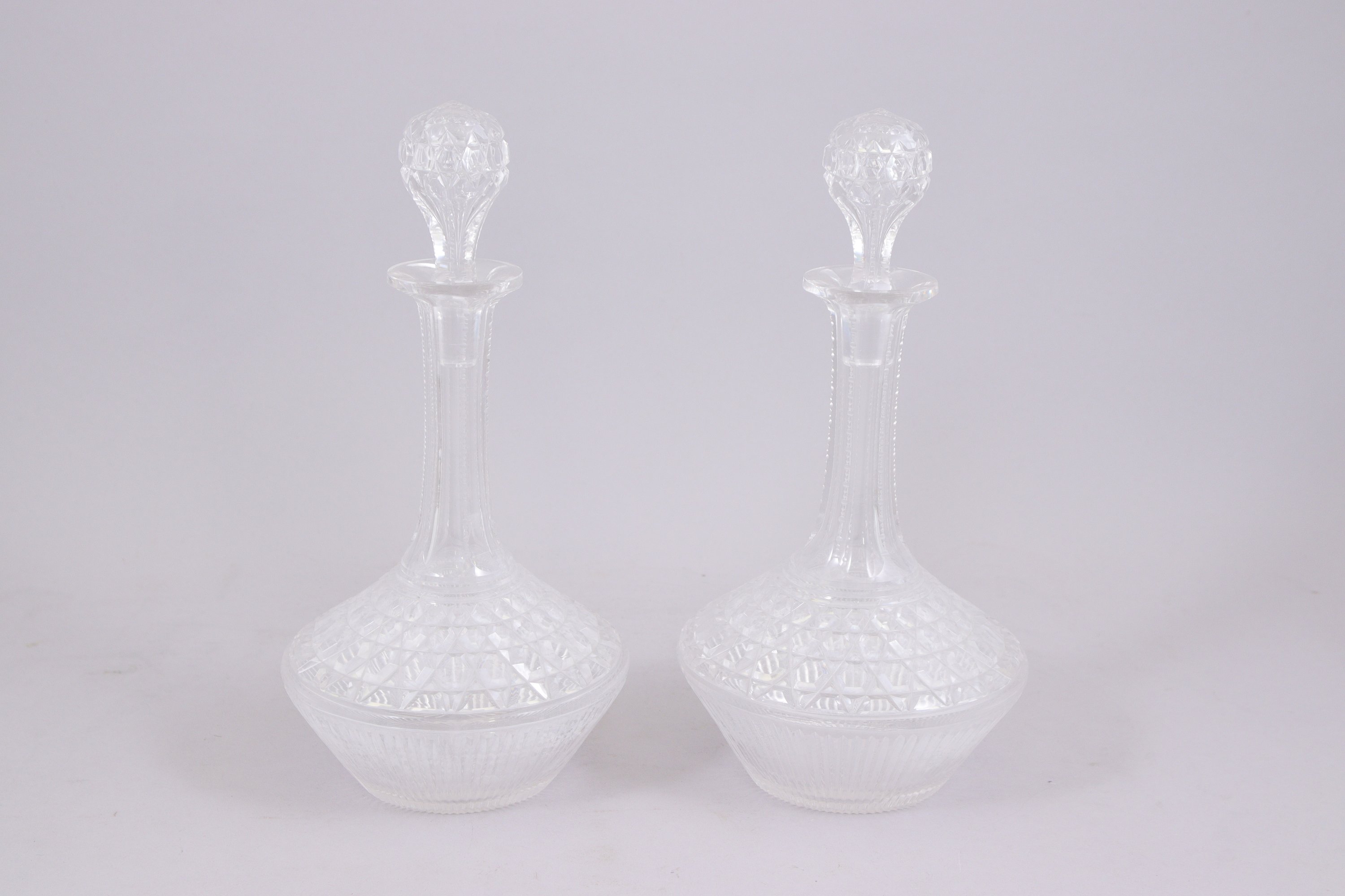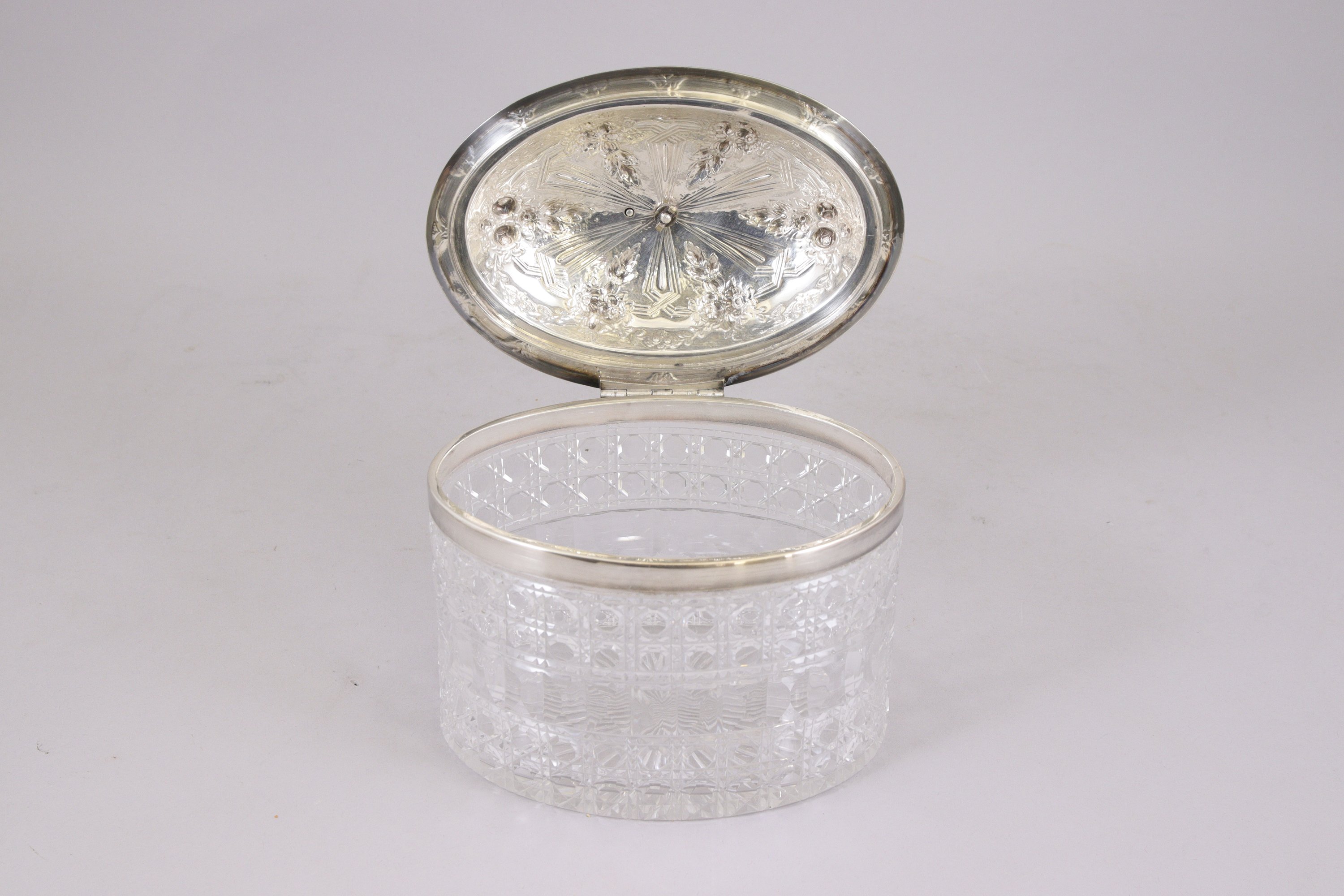 à décor néoclassique de guirlandes et têtes de bélier recevant deux carafes, une boîte à biscuit et six verres en cristal.