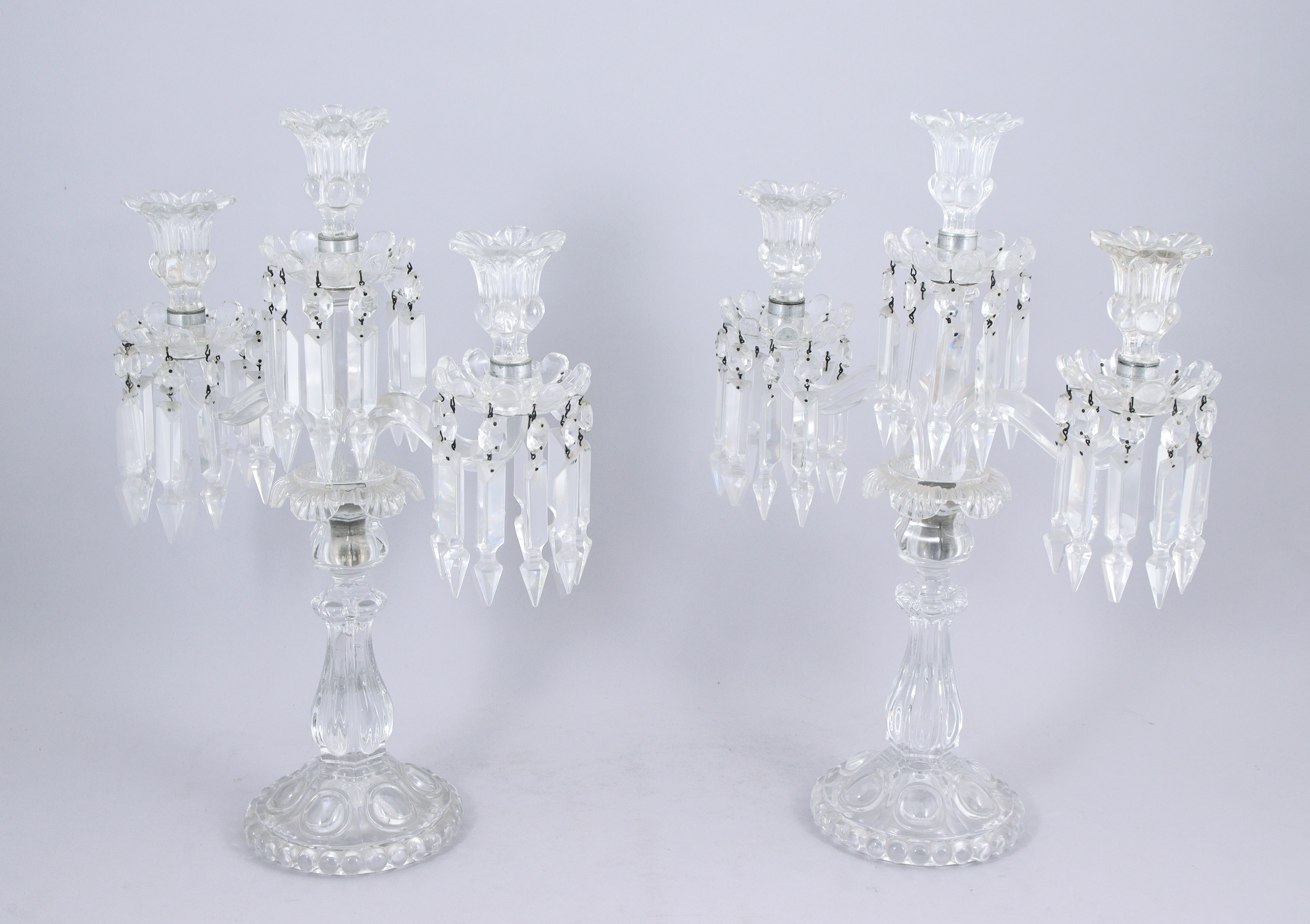 BACCARAT. Paire de GIRANDOLES à trois bras de lumière en cristal,