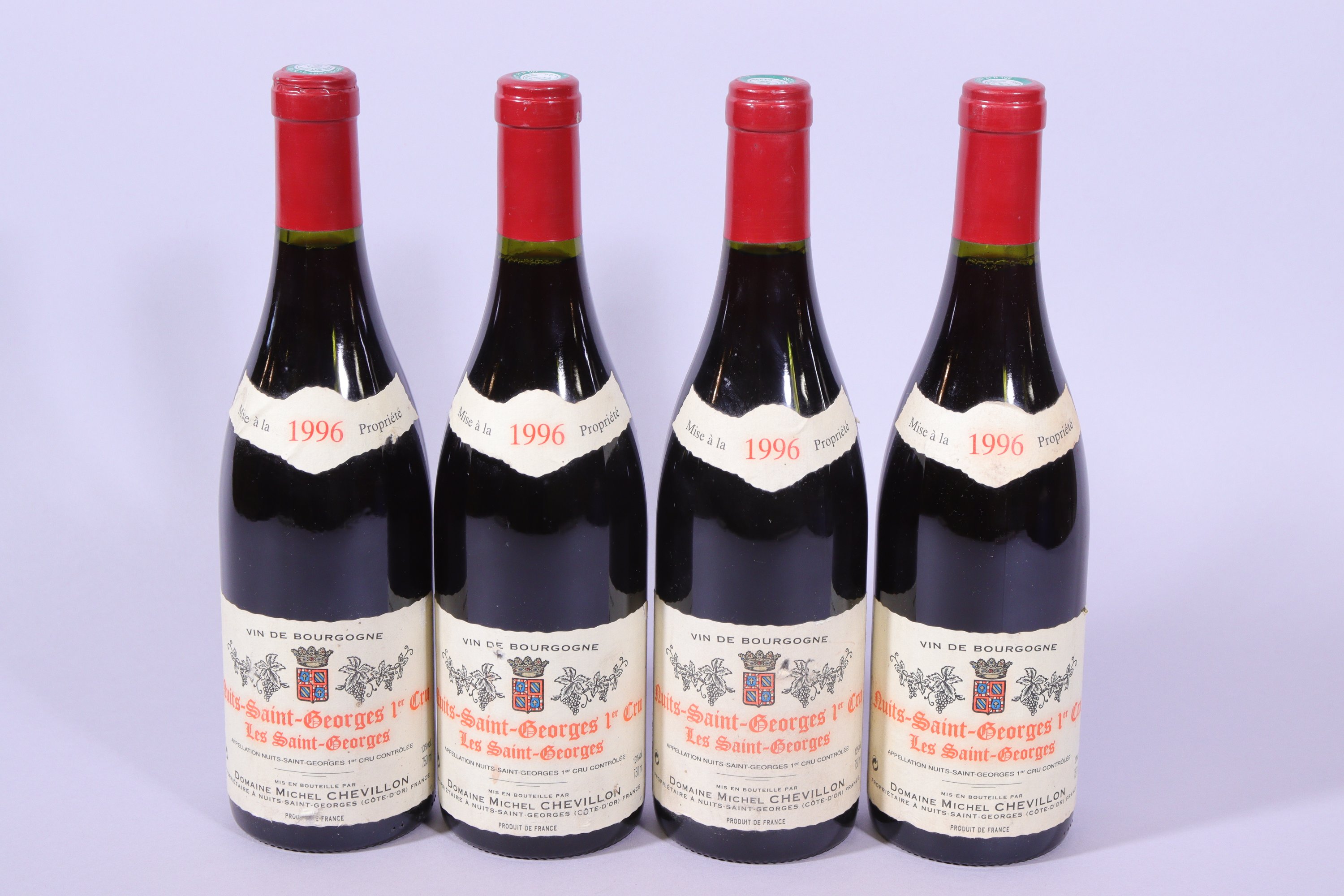 NUITS-SAINT-GEORGES, 1er Cru, Michel Chevillon, 1996, quatre bouteilles, 1 cm et 1,5 cm.
