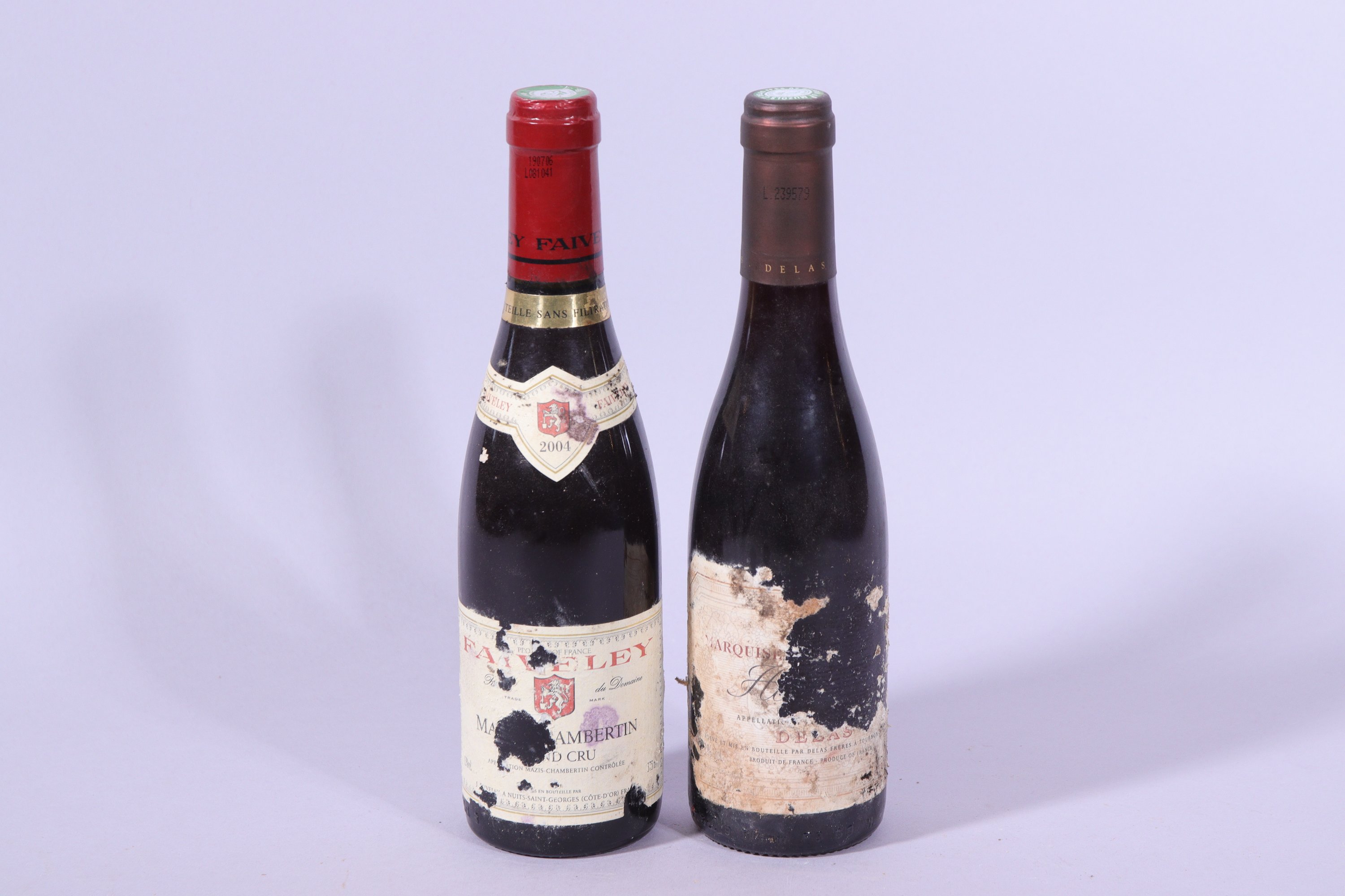 JOINTS: DEUX FILLETTES, MAZIS-CHAMBERTIN, Grand Cru, J. Faiveley, 2004, déchirée ; CROZES-HERMITAGE, Le Clos, Delasse, 1999 (?).