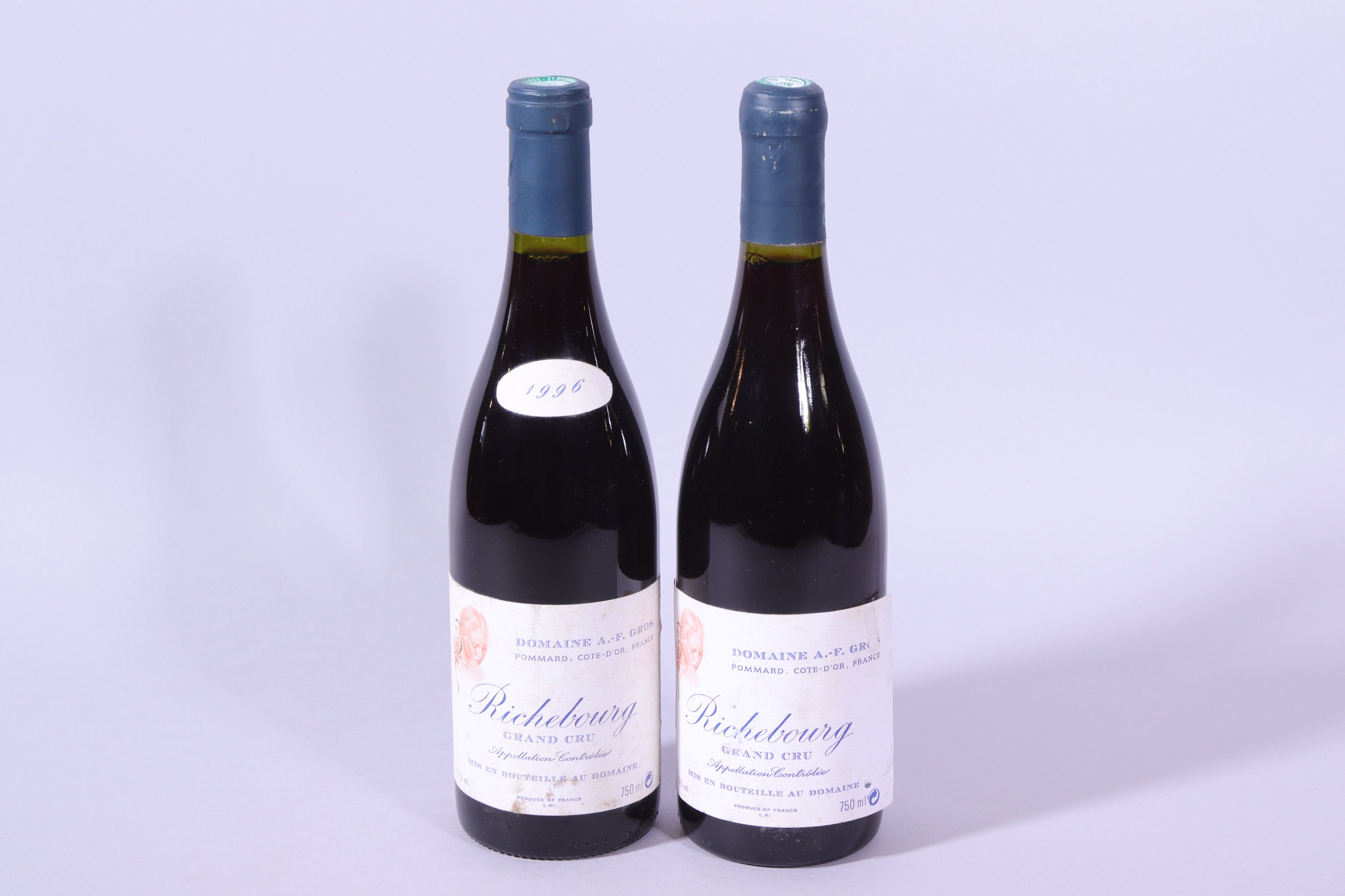POMMARD, Grand Cru, Richebourg, A.-F. Gros, 1996 (?), deux bouteilles à 0,5 cm, étiquettes abimées.