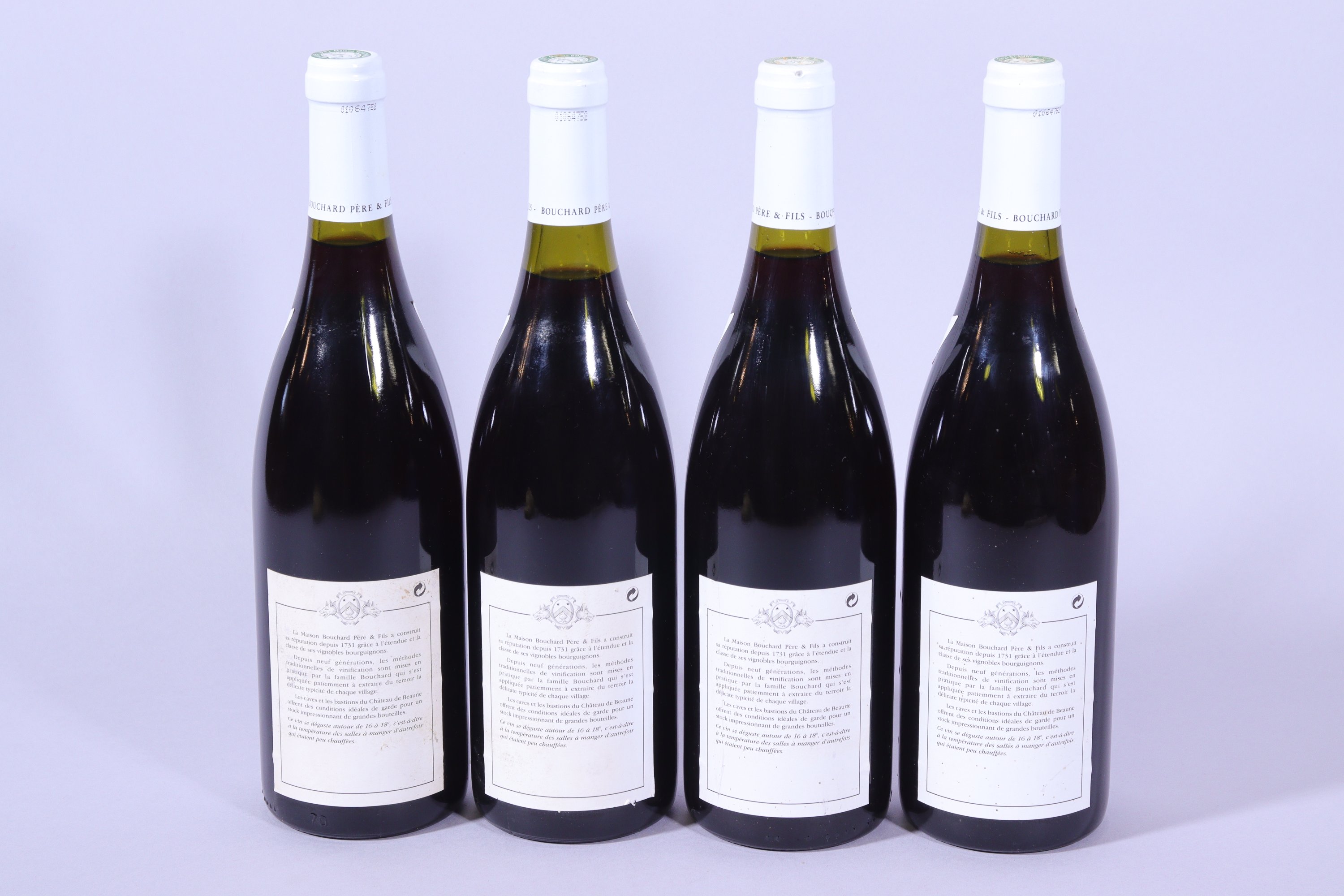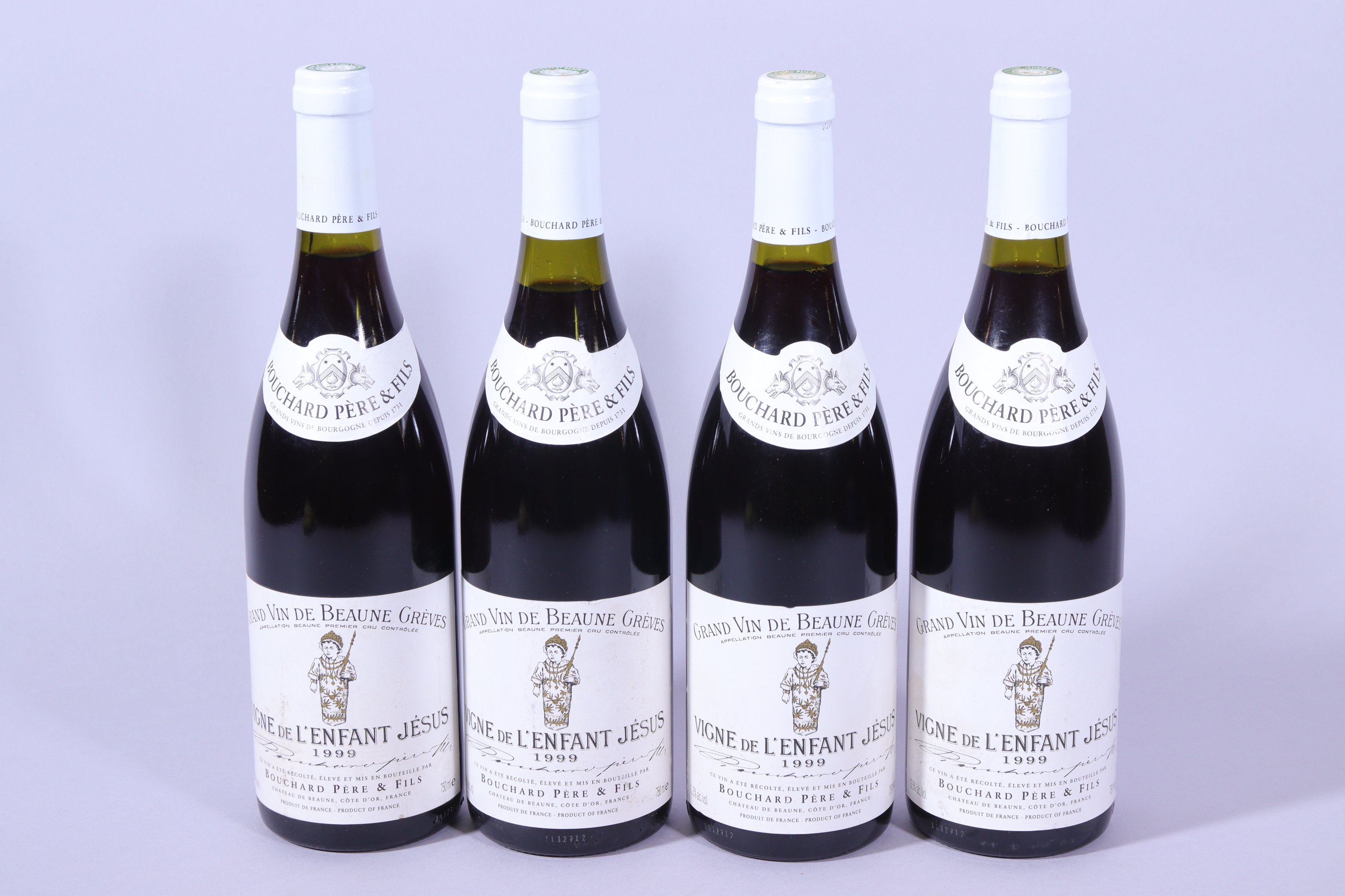 BEAUNE, Grèves, 1er Cru, Vigne de lEnfant Jésus, Bouchard Père & fils, 1999, quatre bouteilles, dont 2 à 1,5 cm et 2 à 1 et 2 cm.