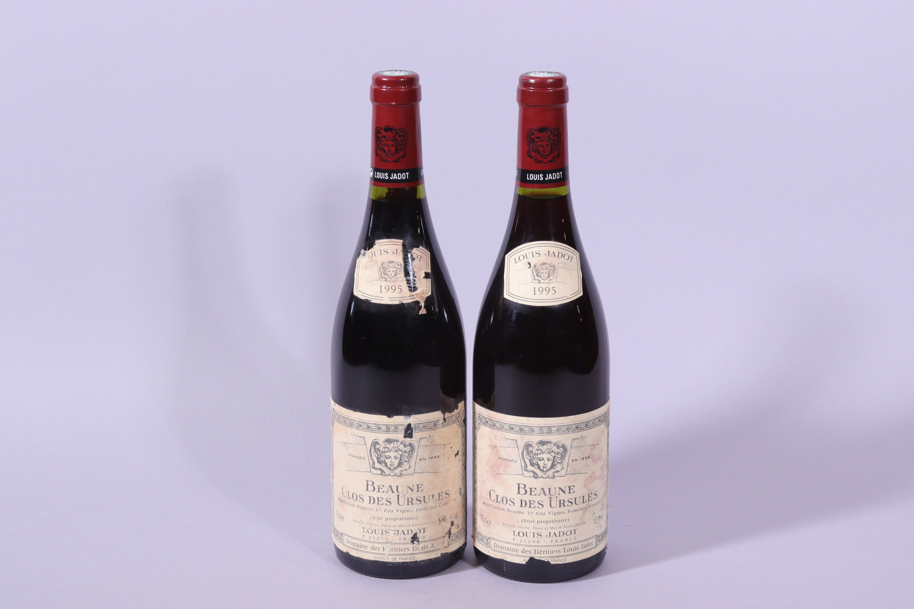 BEAUNE, 1er Cru, Clos des Ursules, Louis Jadot, 1995, deux bouteilles à 1 cm, étiquettes déchirées et tachées.