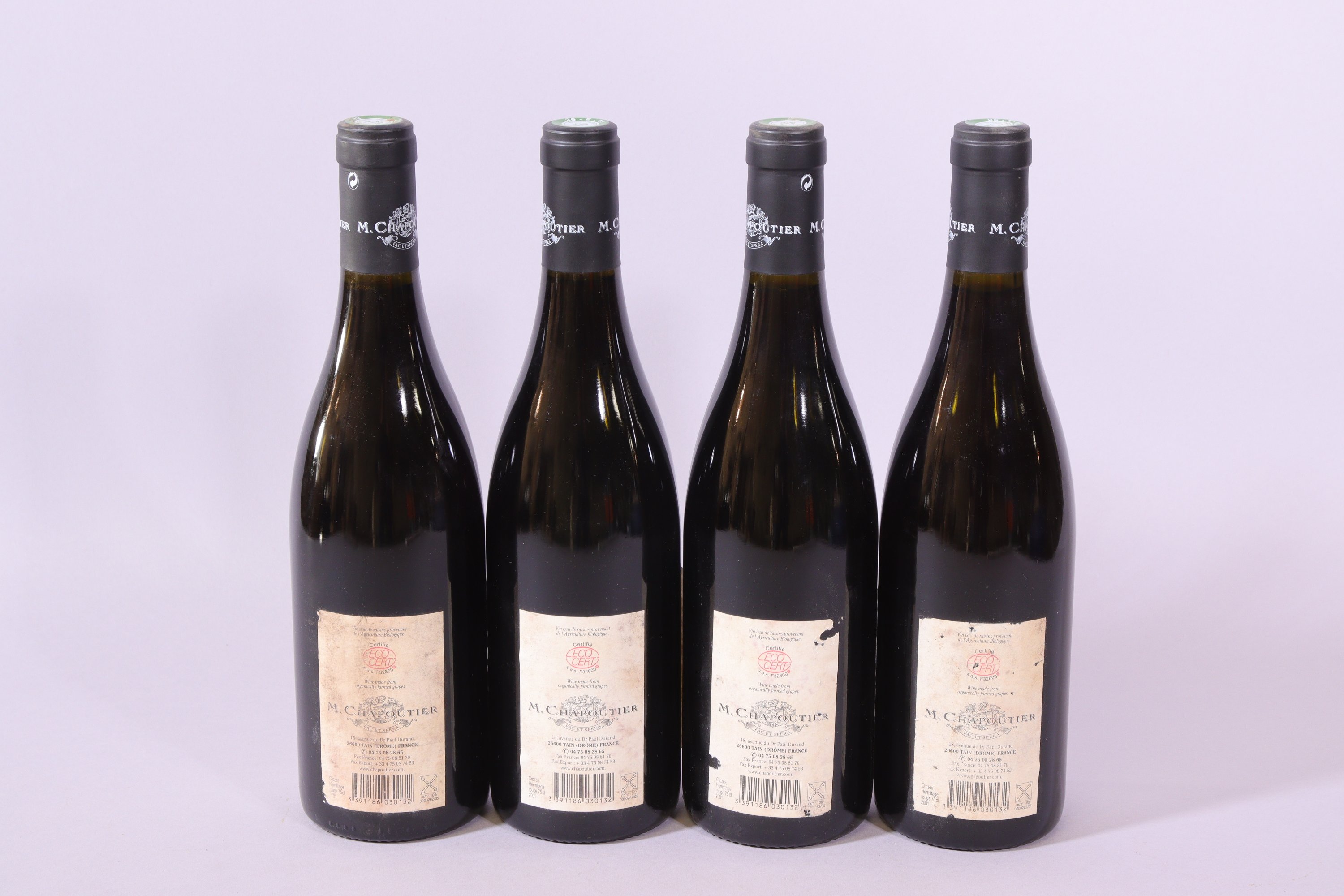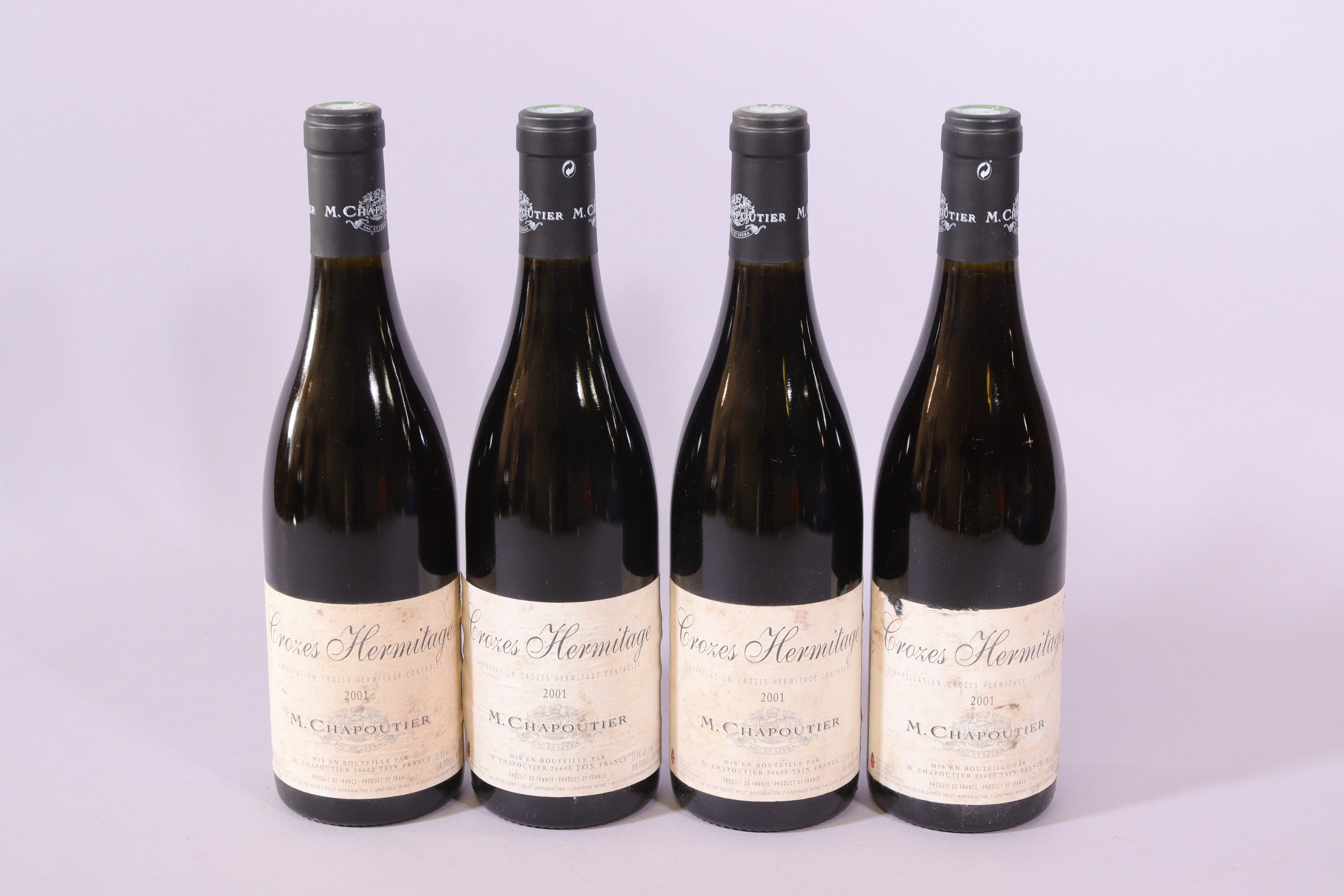 CROZES-HERMITAGE, M. Chapoutier, 2001, quatre bouteilles, étiquettes tachées.