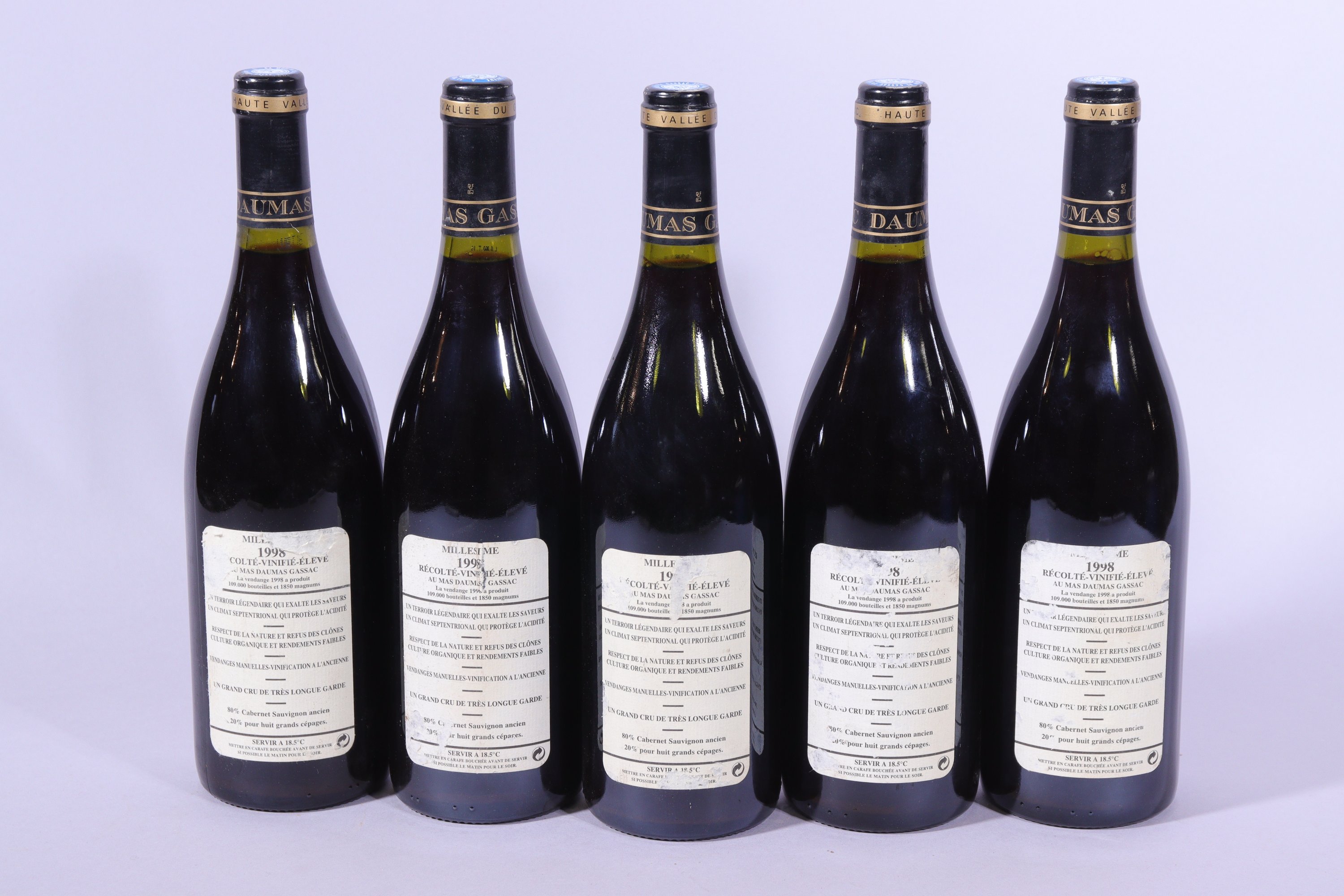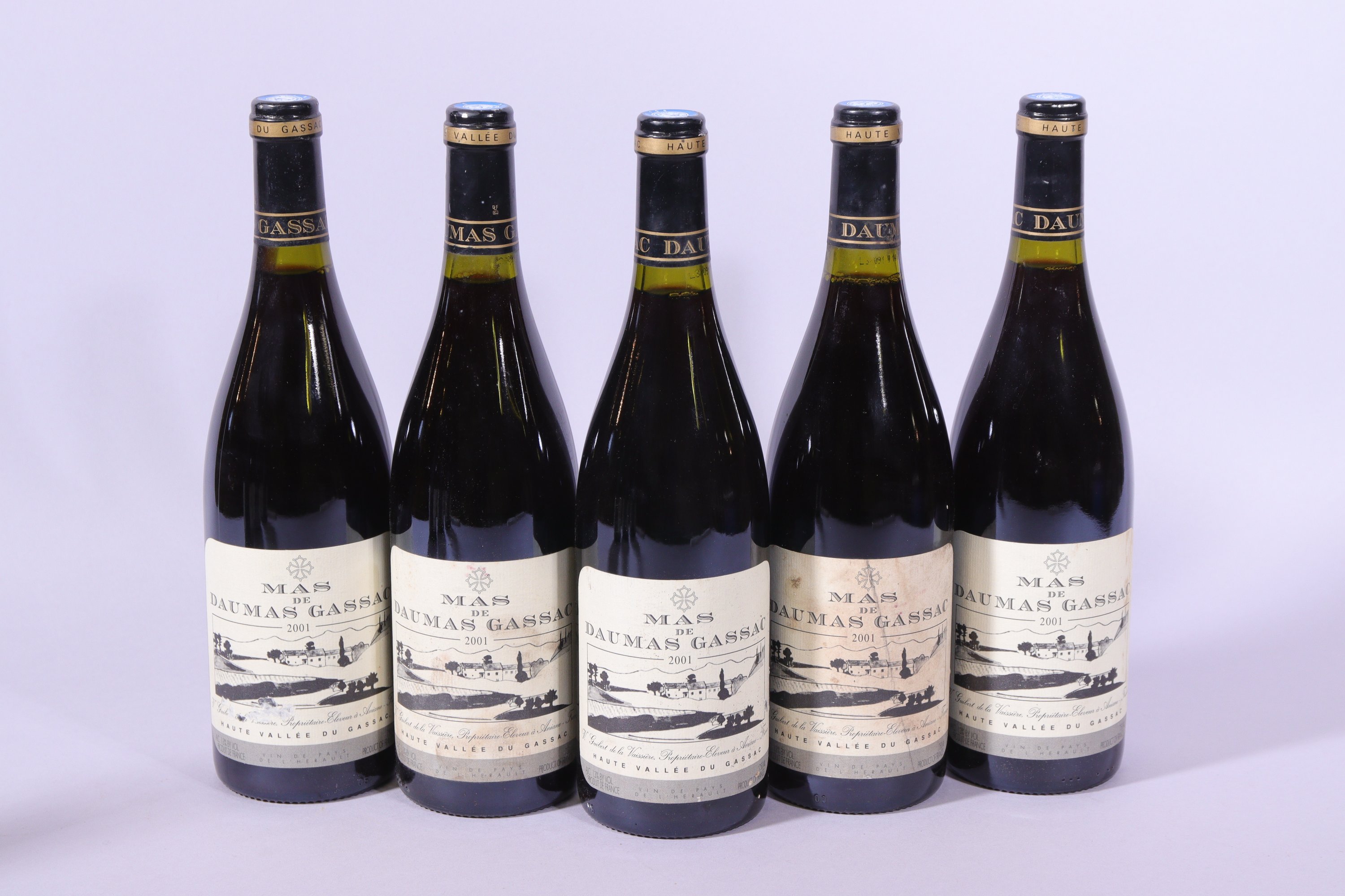 DOUZE BOUTEILLES : VIN de PAYS de lHERAULT, Haute Vallée du Gassac, Mas Daumas Gassac, V. Guibert de la Vaissière, 1998, cinq bouteilles, étiquettes endommagées ; VIN de PAYS de lHERAULT, Haute Vallée du Gassac, Mas Daumas Gassac, V. Guibert de la Vaissière, 2001, cinq bouteilles, étiquettes endommagées ; VIN de PAYS de lHERAULT (vin blanc), Haute Vallée du Gassac, Mas Daumas Gassac, V. Guibert de la Vaissière,1993, deux bouteilles, étiquettes endommagées.