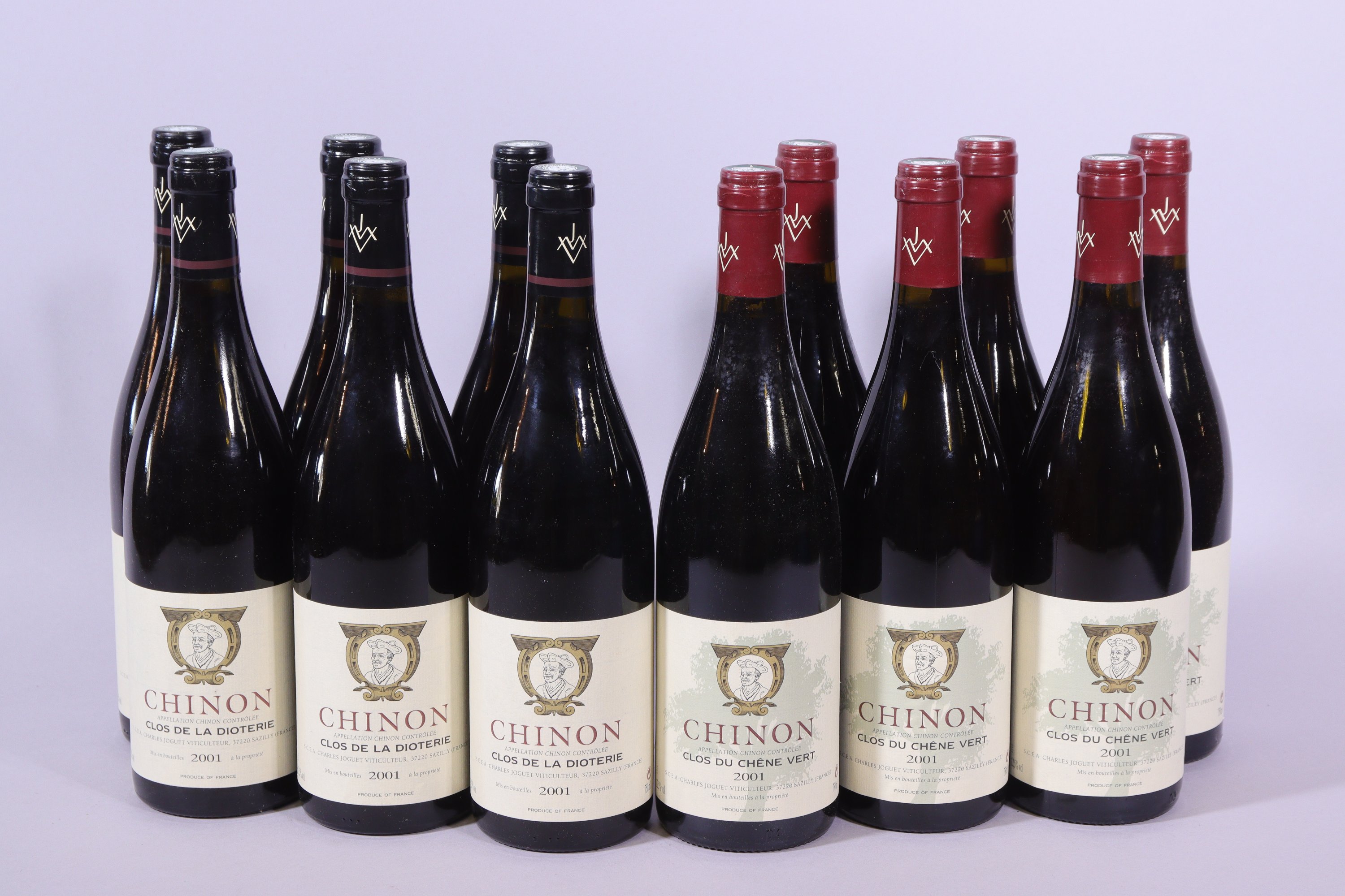 CHINON, Clos de la Dioterie et Clos du Chêne Vert, Charles Joguet, 2001, deux cartons de 6 bouteilles, 1 à 2 cm.