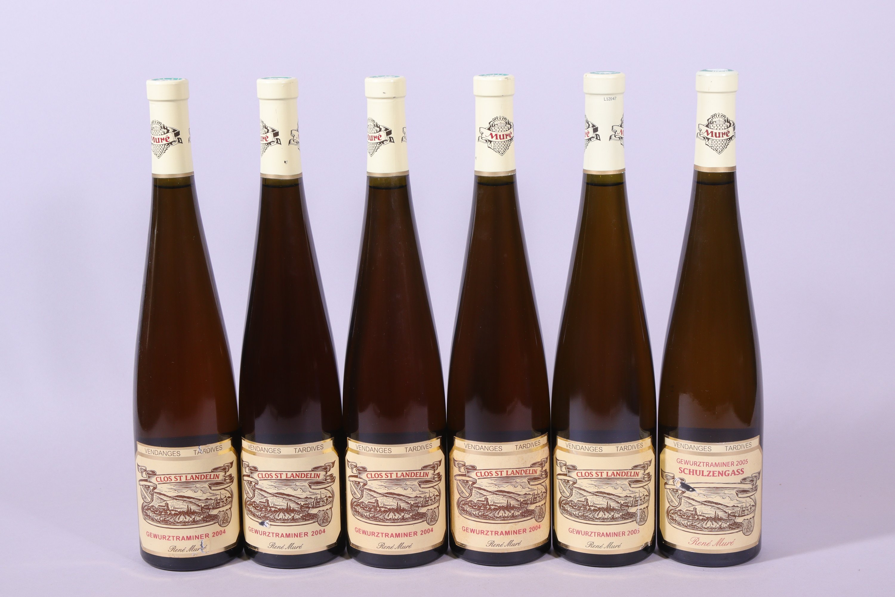 GEWURZTRAMINER, René Muré, quatorze bouteilles de 2001 à 2005, 1 à 2 cm, étiquettes abîmées.