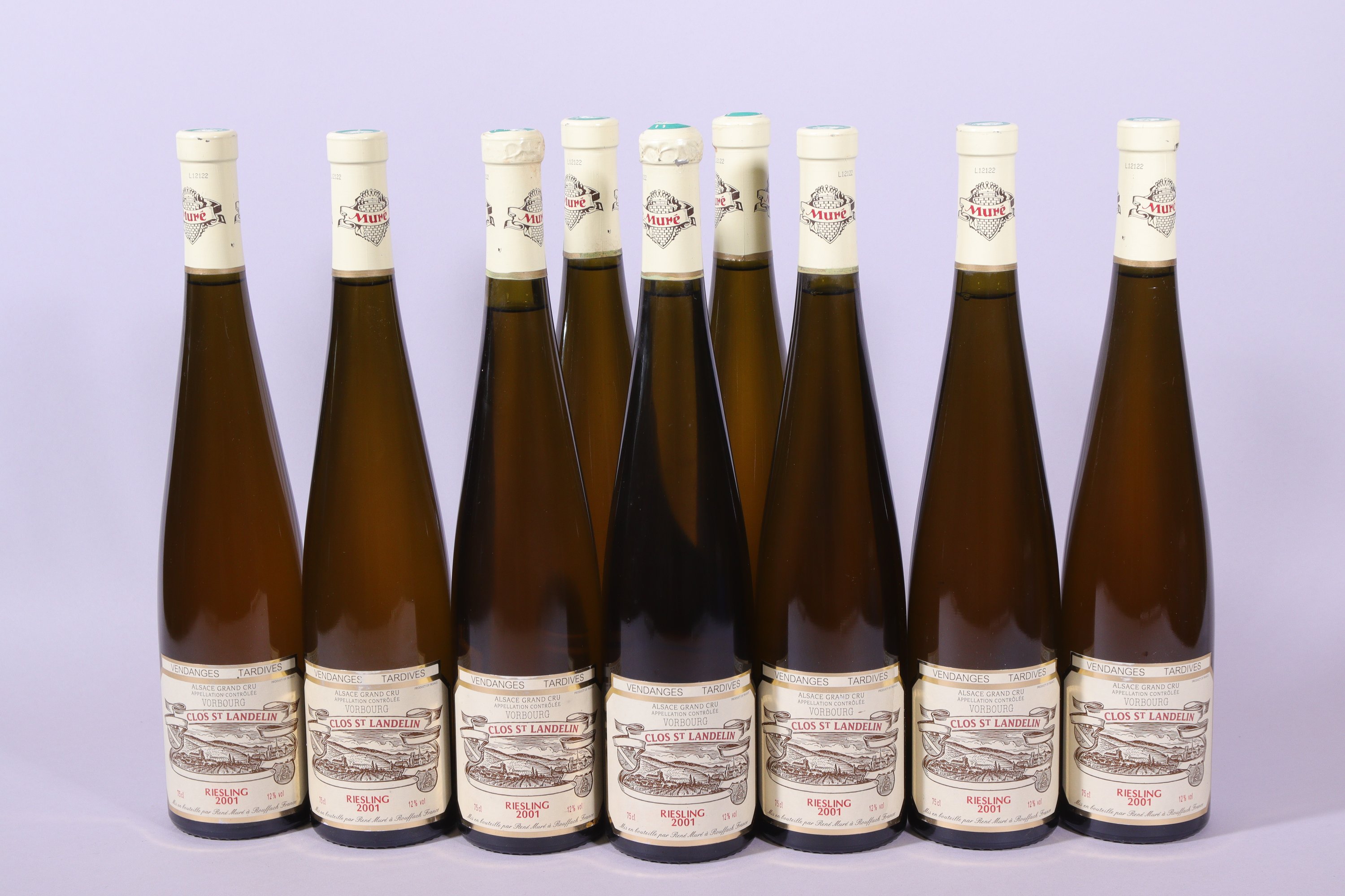 ALSACE, Grand Cru, Riesling, Clos St Landelin, René Muré, neuf bouteilles de 2001 et deux de 2005, 1 à 2 cm, étiquettes abîmées.