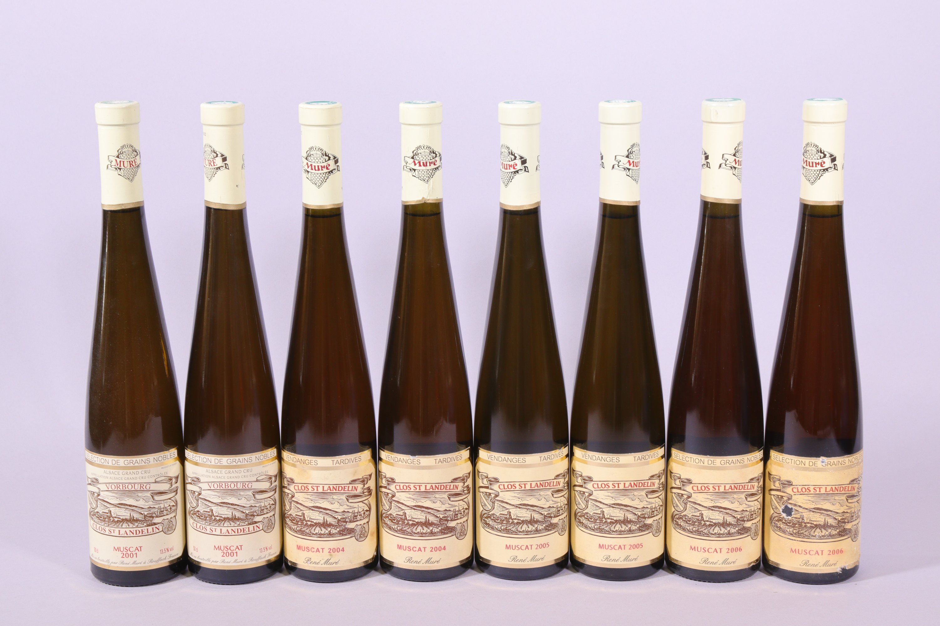 JOINTS: HUIT BOUTEILLES: ALSACE, Grand Cru, Muscat, Clos St Landelin, René Muré, 2006, 50 CL, 1 à 2 cm.