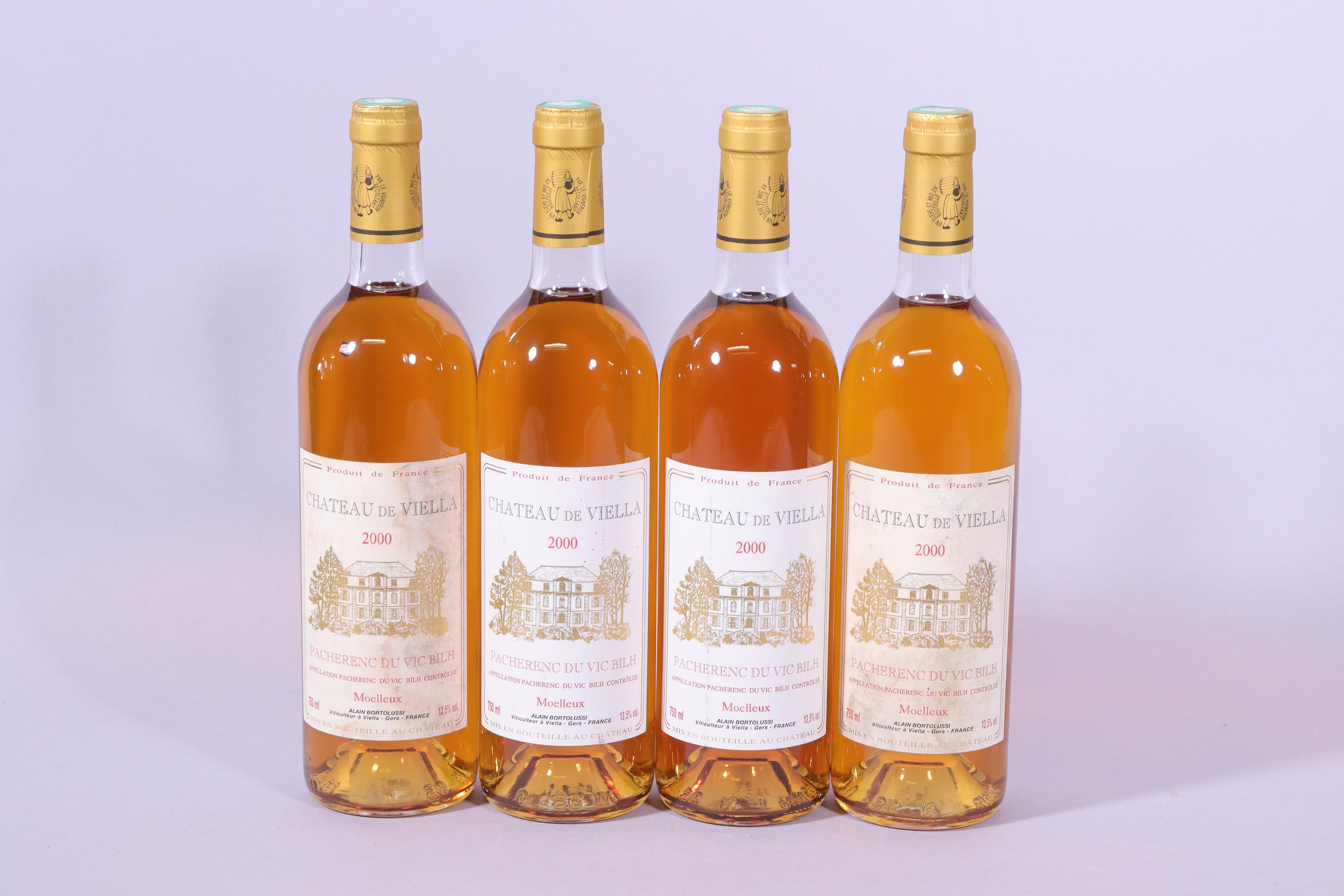 JOINT : PACHERENC du VIC BILH, Château de Viella, Alain Bortolussi, 2000, quatre bouteilles, étiquettes tachées.