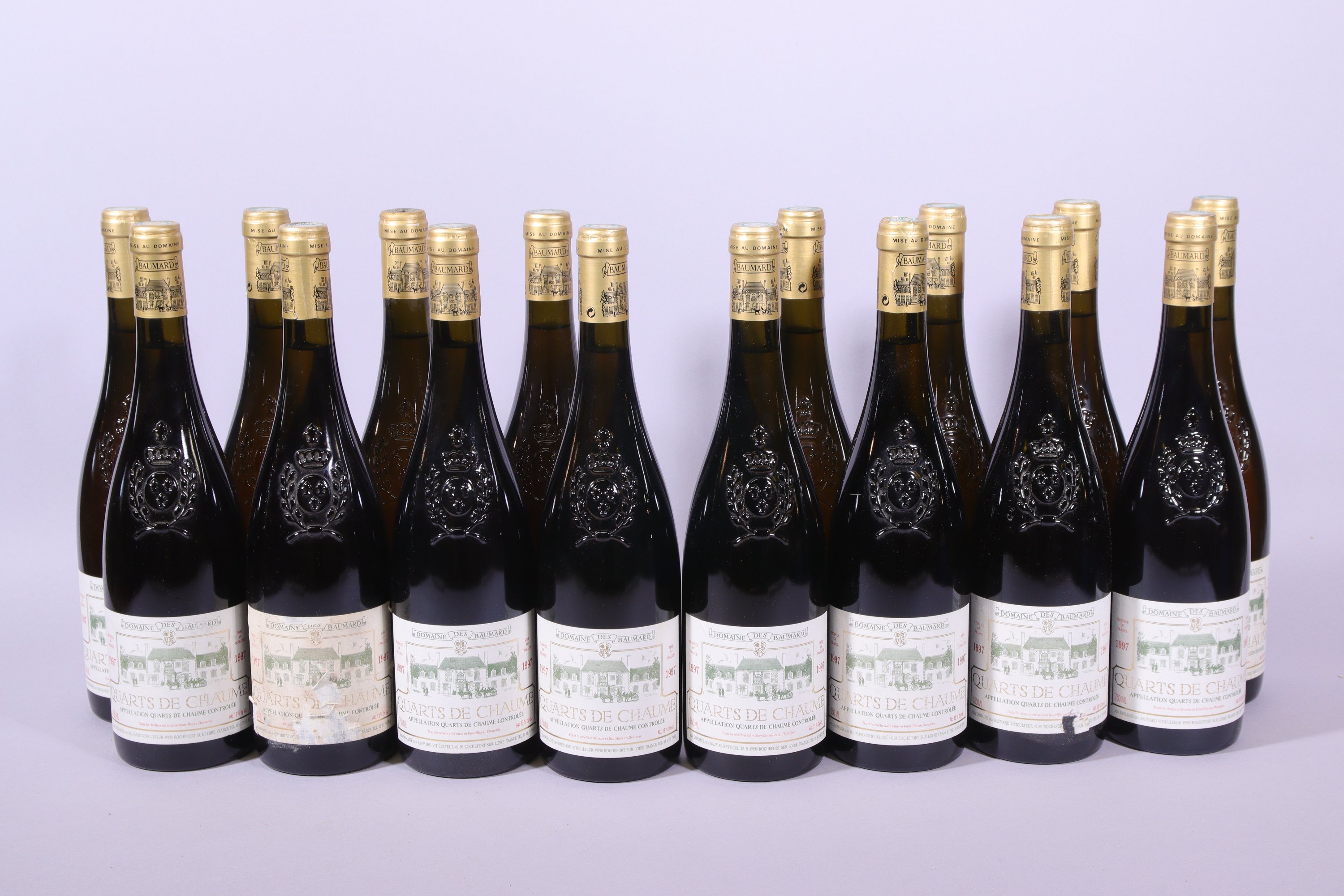 QUARTS de CHAUME, Domaine des Baumard, 1997, seize bouteilles, 1 à 3 cm, étiquettes abimées.