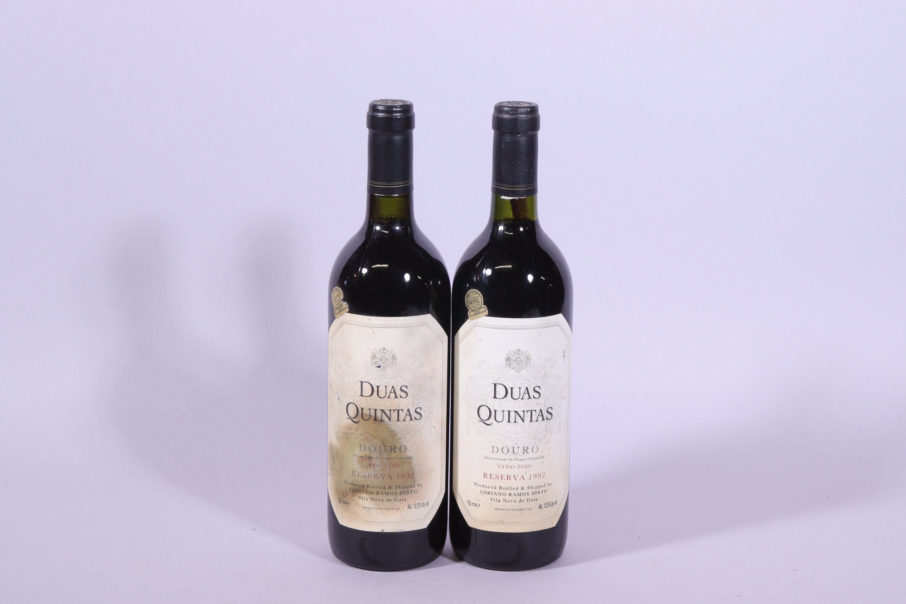PORTO, Duas Quintas, Adriano Ramos-Pinto, 1992, deux bouteilles, étiquettes abîmées.