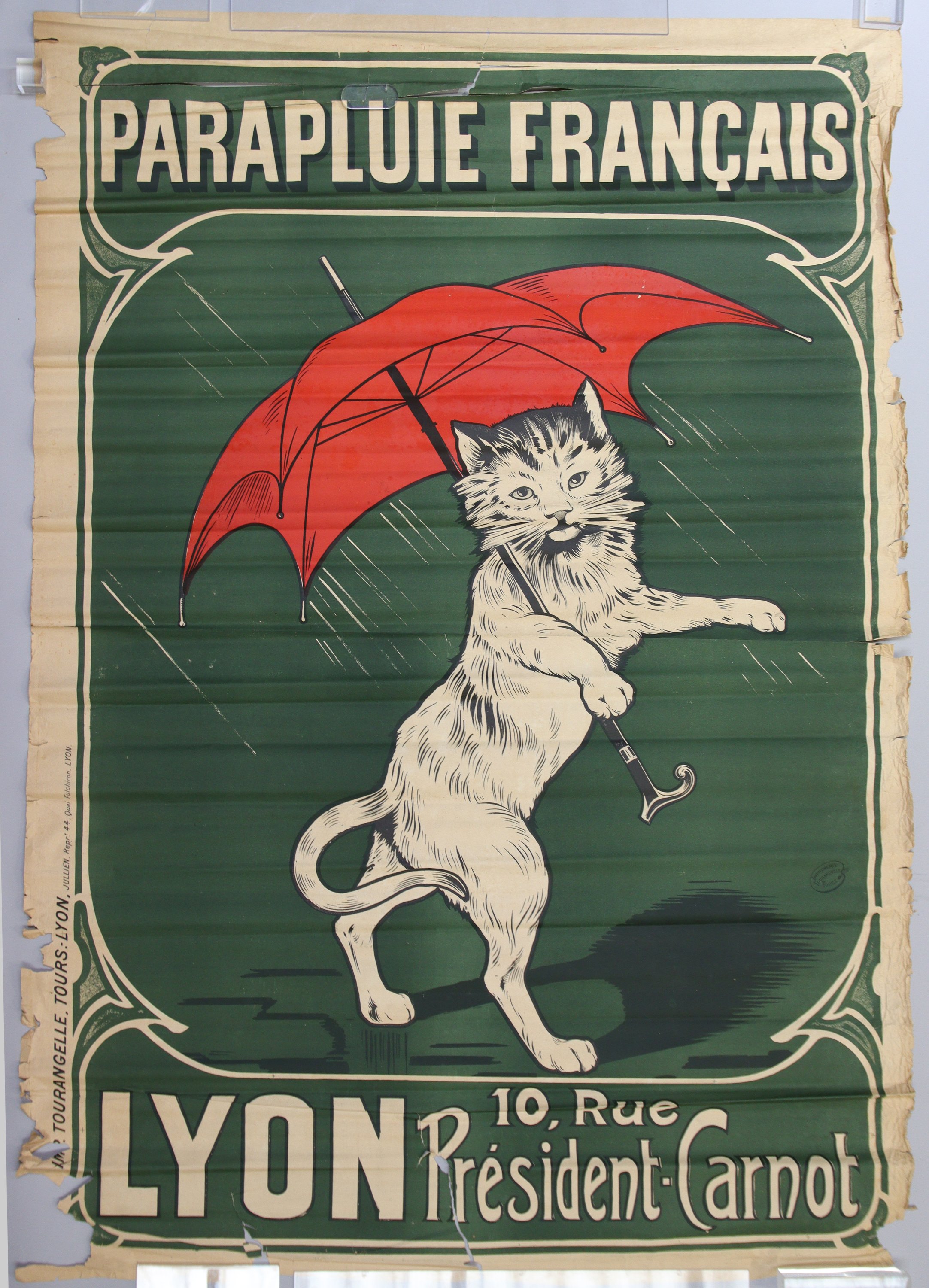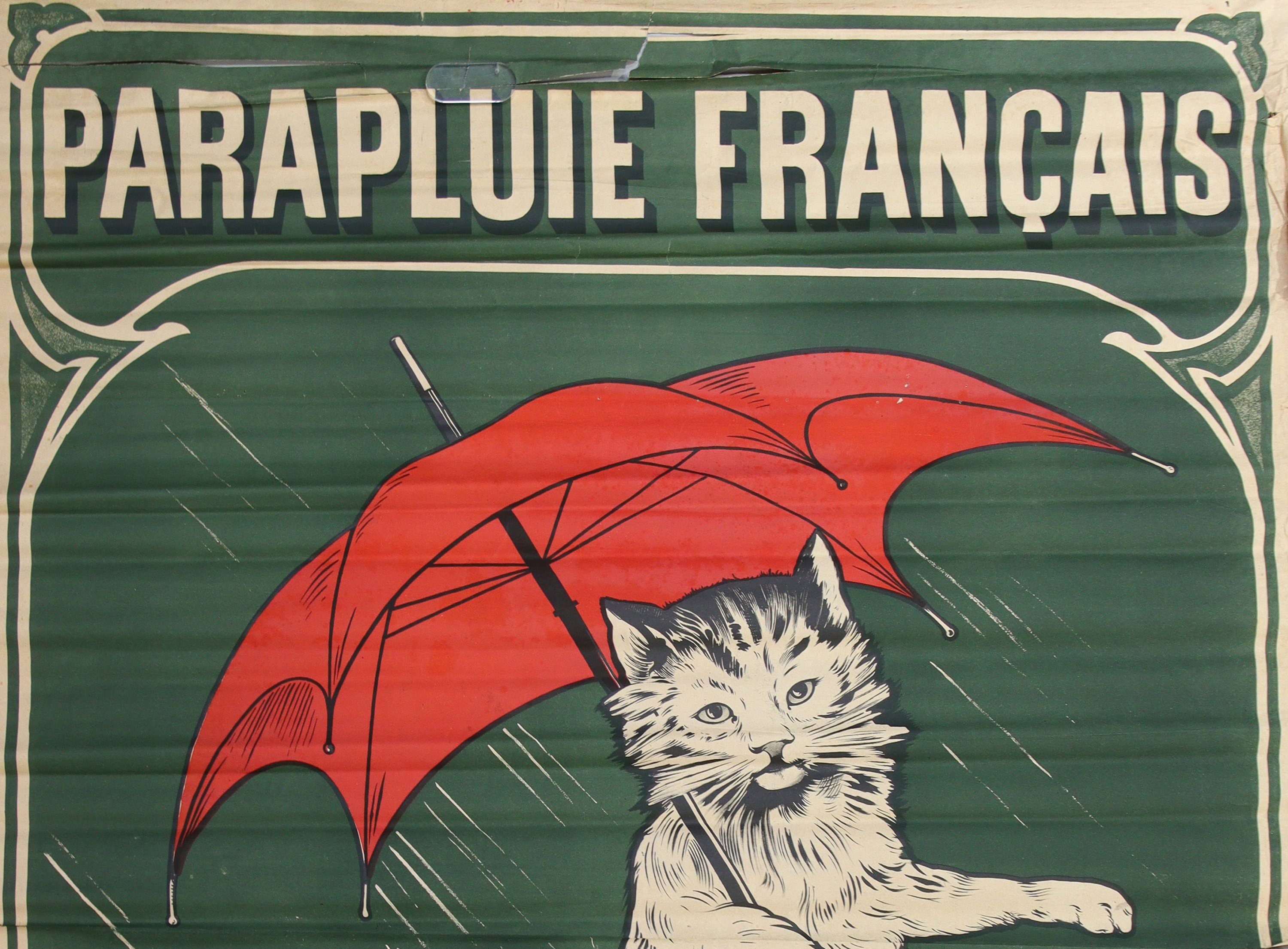 "PARAPLUIE FRANÇAIS / LYON 110 rue Président Carnot". Vers 1920. Epreuve originale imprimée en couleurs. "Imp. Tourangelle, Tours-Lyon".
