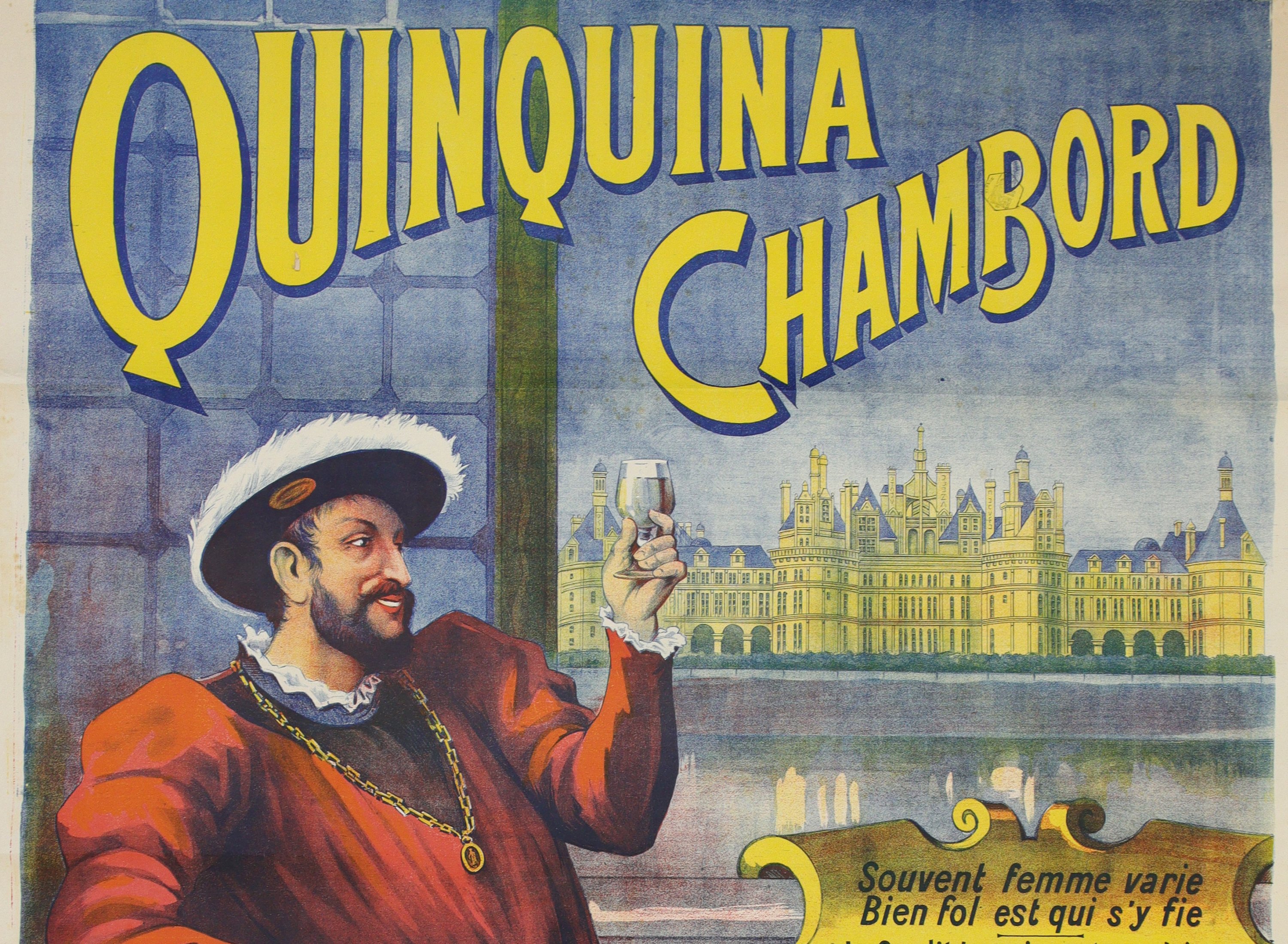 "QUINQUINA CHAMBORD / Georges LEMAIRE Gde Distillerie de BLOIS". Signée. Vers 1900. Epreuve originale imprimée en couleurs. "La lithographie Nouvelle, Asnières / Affiches métalliques (