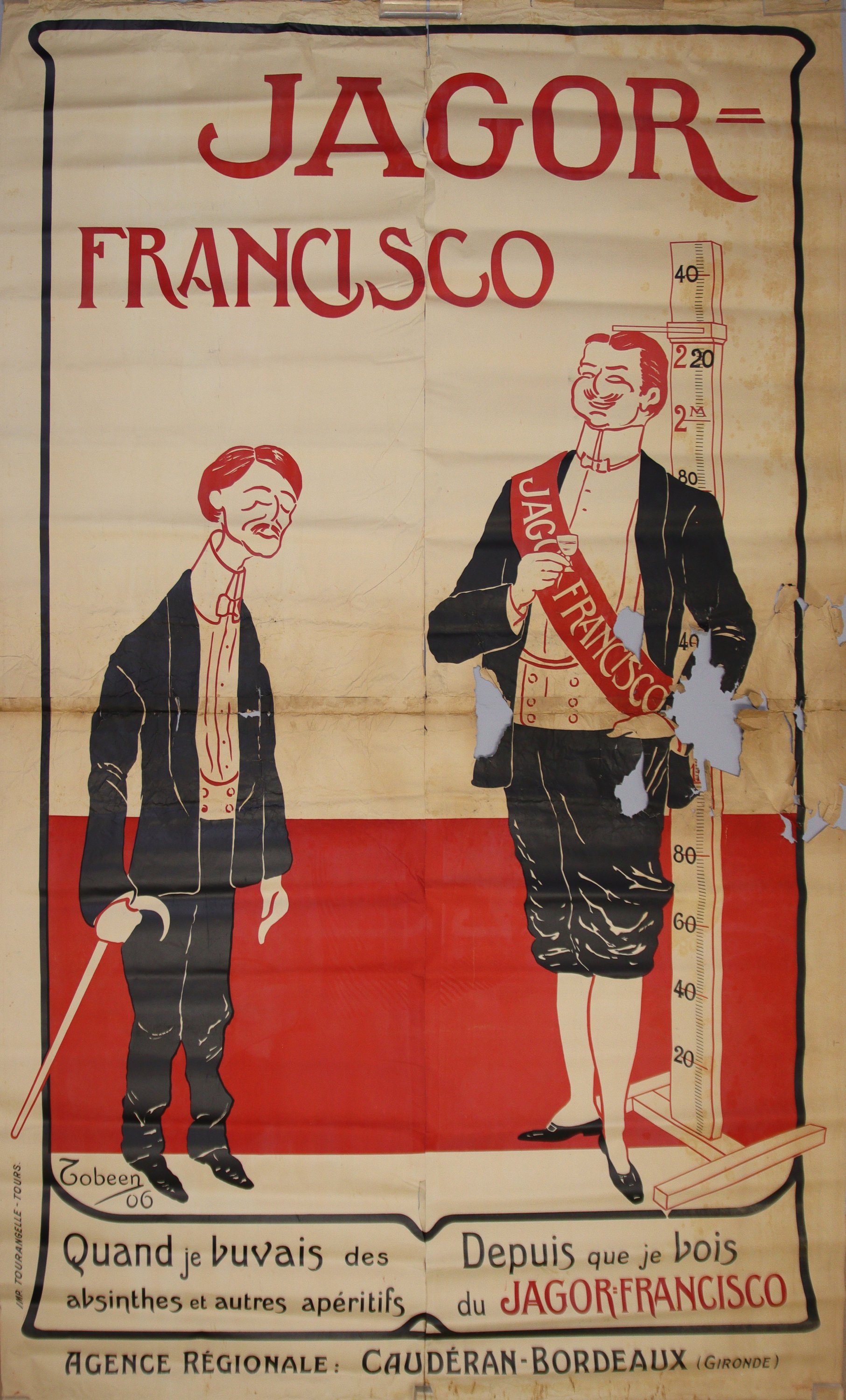 "JAGOR-FRANCISCO / Bordeaux". Signées et datées 1906. Epreuves originales imprimées en couleurs. "Imp. Tourangelle, Tours". Rarissimes et spectaculaires affiches.
