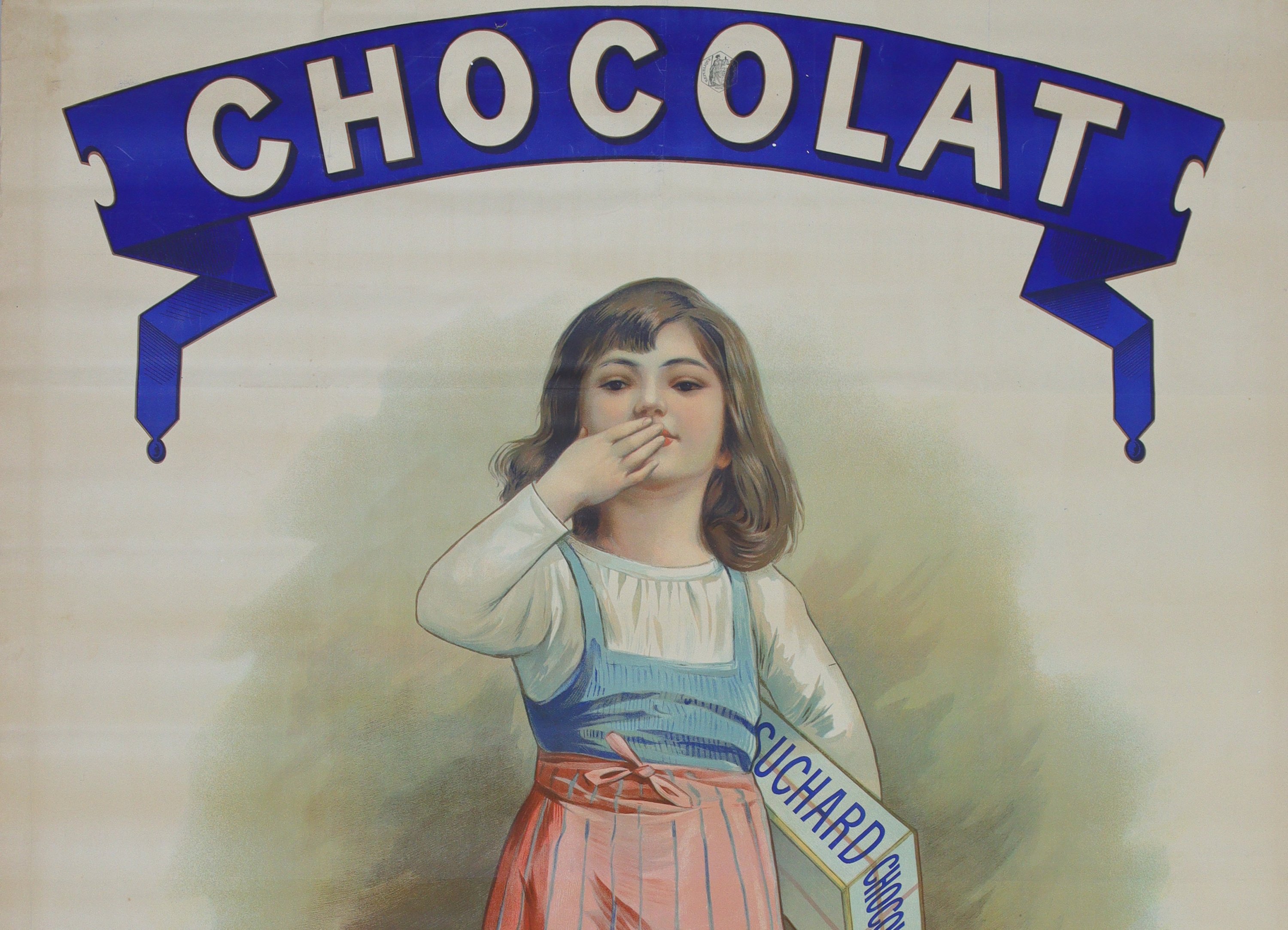 "CHOCOLAT / SUCHARD / Grand Prix Paris 1900" Epreuve originale imprimée en couleurs. "F. Champenois, imprimeur éditeur, 66 boulevard Saint Michel Paris". Timbre fiscal.