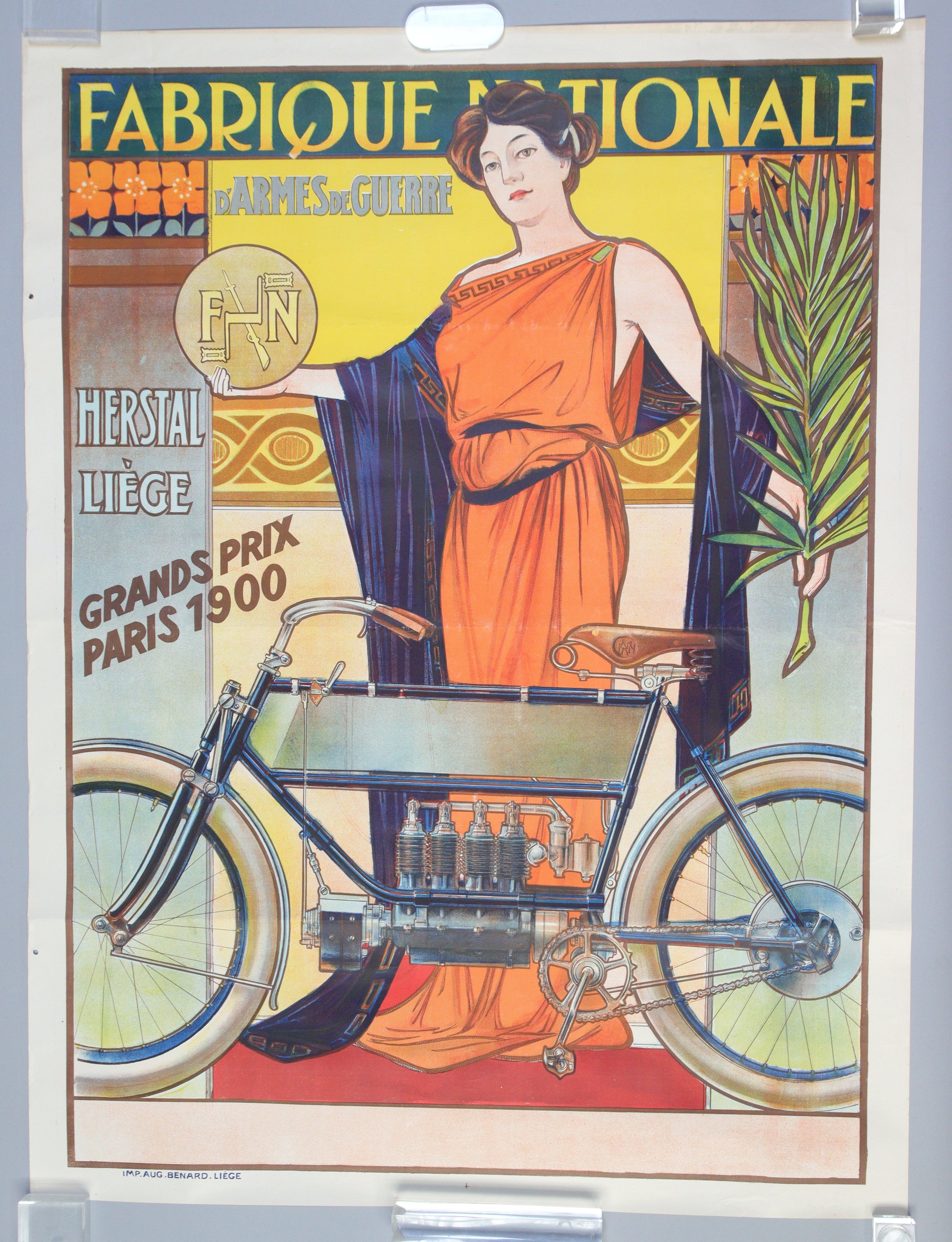 "Fabrique Nationale, FN, Herstal, Liège, Grands Prix de Paris, 1900." Epreuve originale imprimée en couleurs "Imp. Aug. Bénard, Liège"