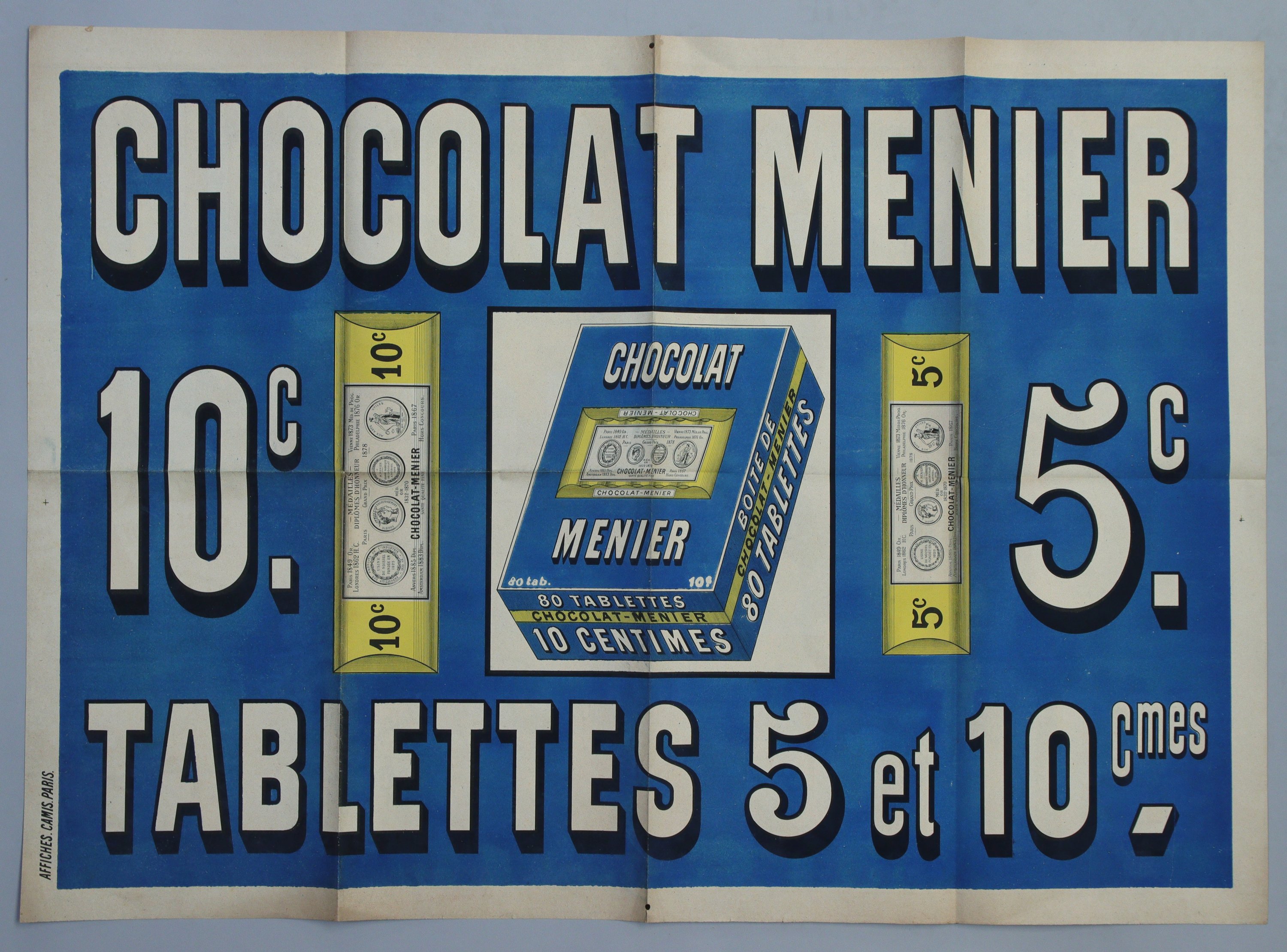 « CHOCOLAT MENIER / Tablettes 5 et 10 cts ». [1898]. Env. 75 x 106 cm (plis, rousseurs/salissures) ;