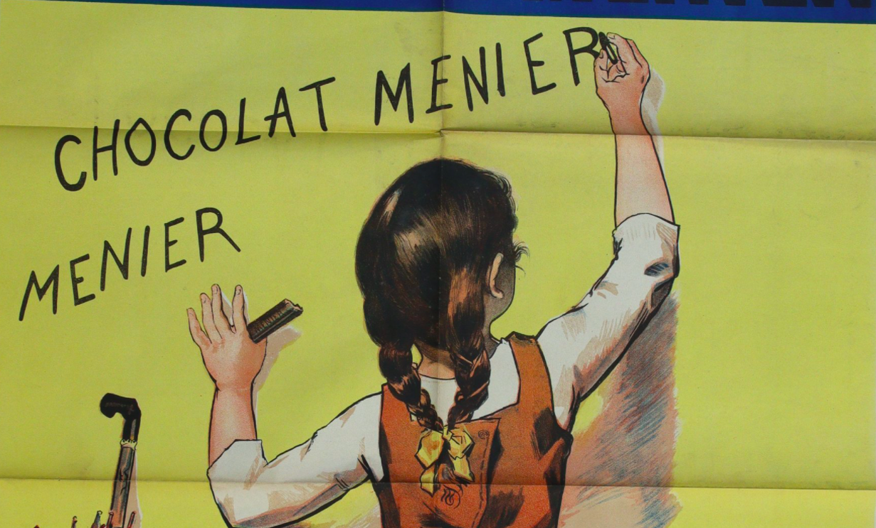 « CHOCOLAT MENIER ». Vers 1898. Env. 33,5 x 67,5 cm (plis).