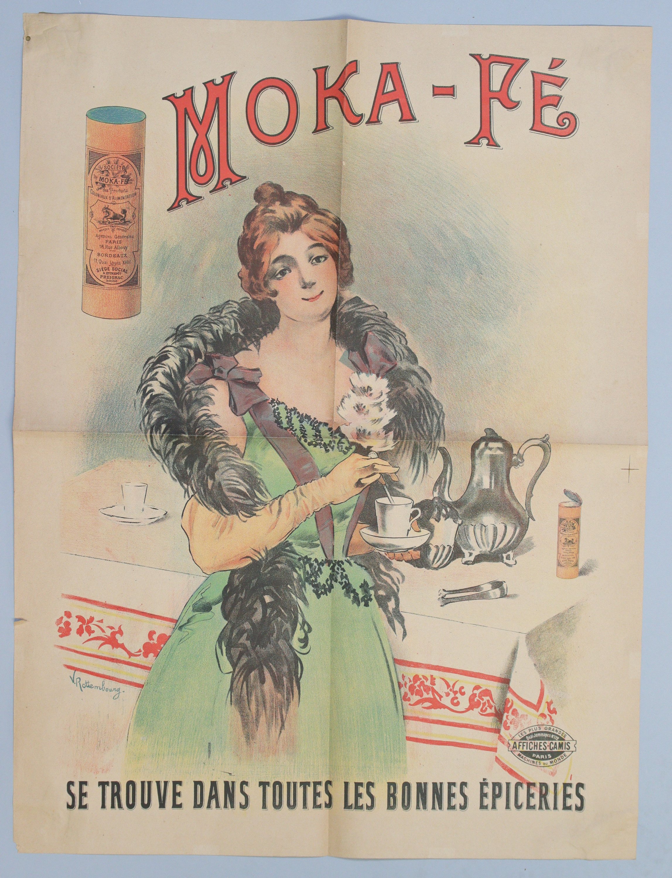 « MOKA-FÉ ». Signée. Vers 1898. Env. 80 x 60 cm (plis, petites déchirures, rousseurs/salissures) ;