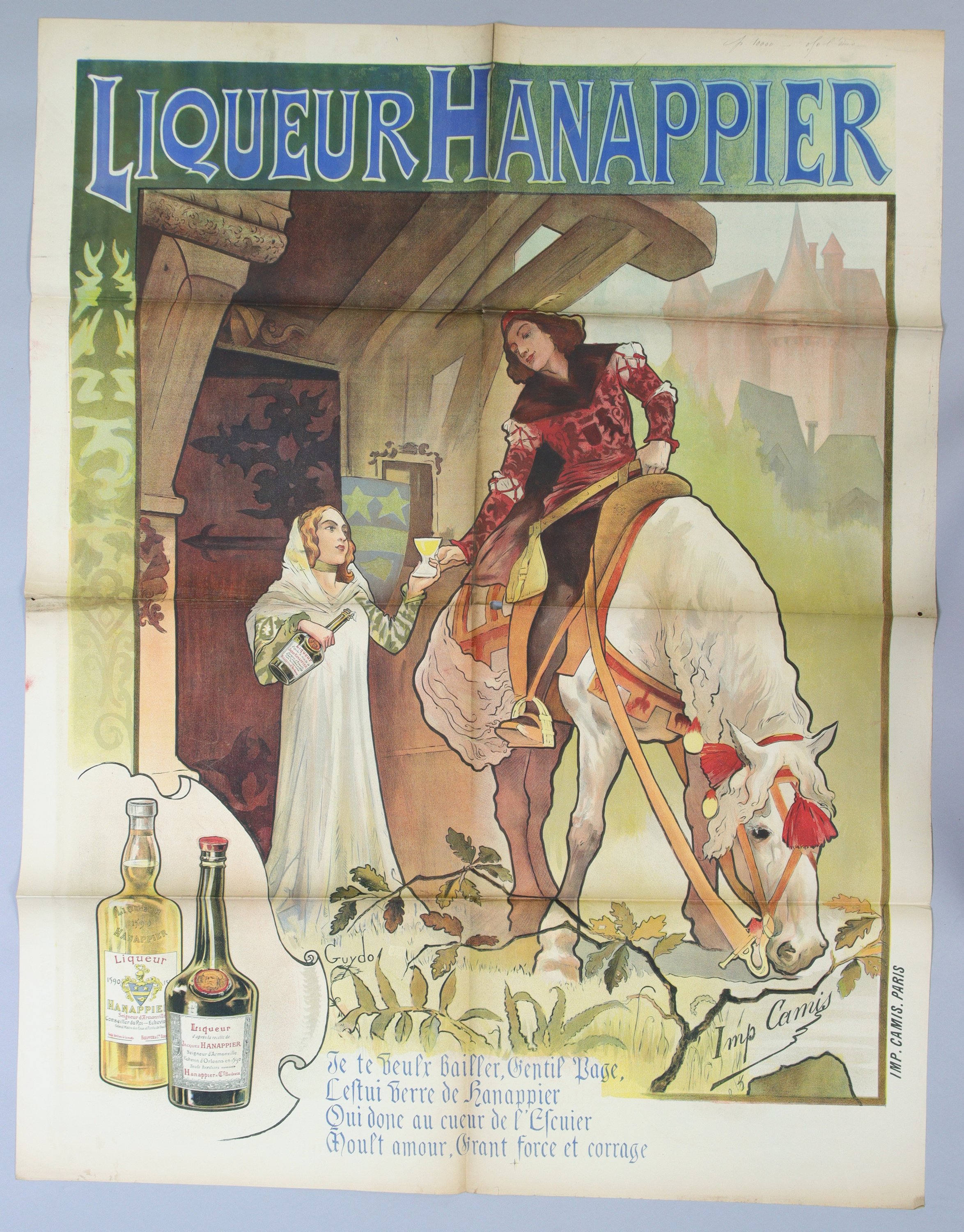 « LIQUEUR HANAPPIER ». Signées. Vers 1895. 2 exemplaires. Env. 130 x 100 cm (plis, rousseurs/salissures). Bel exemplaire.