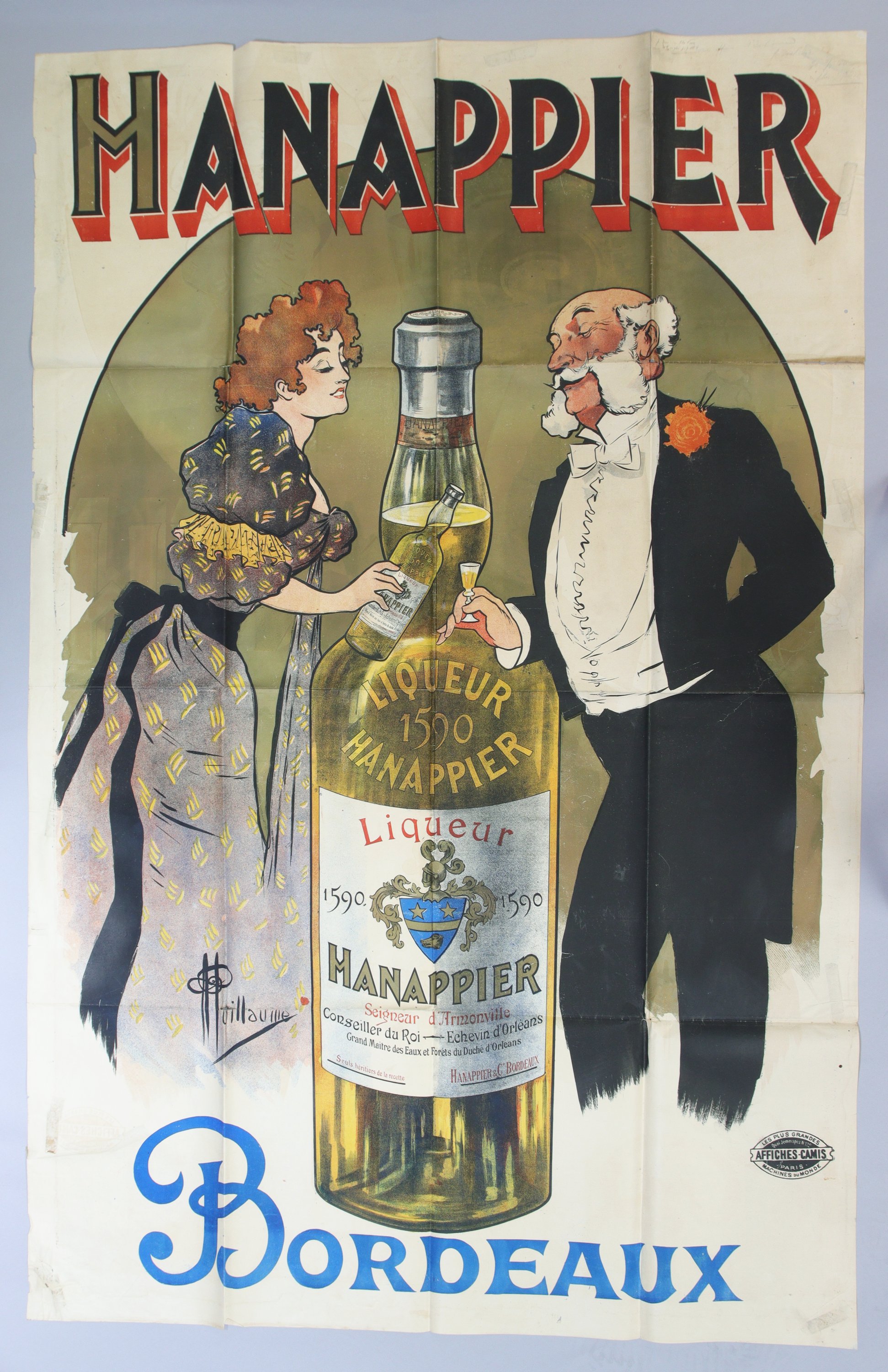 « LIQUEUR A. HANAPPIER / Bordeaux ». Signée. Vers 1898. Env. 190 x 124 cm (plis, déchirures, rousseurs/salissures).