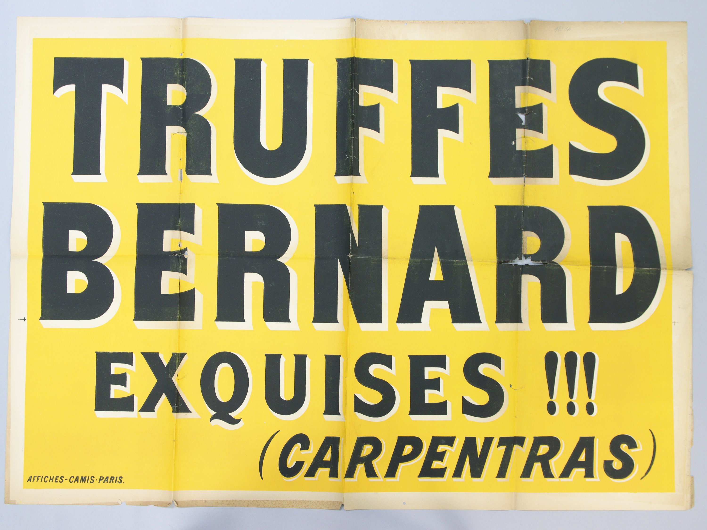 « TRUFFES BERNARD Exquises!!! (Carpentras) ». Vers 1898. Env. 100 x 140 cm (plis, déchirures, rousseurs/salissures) ;