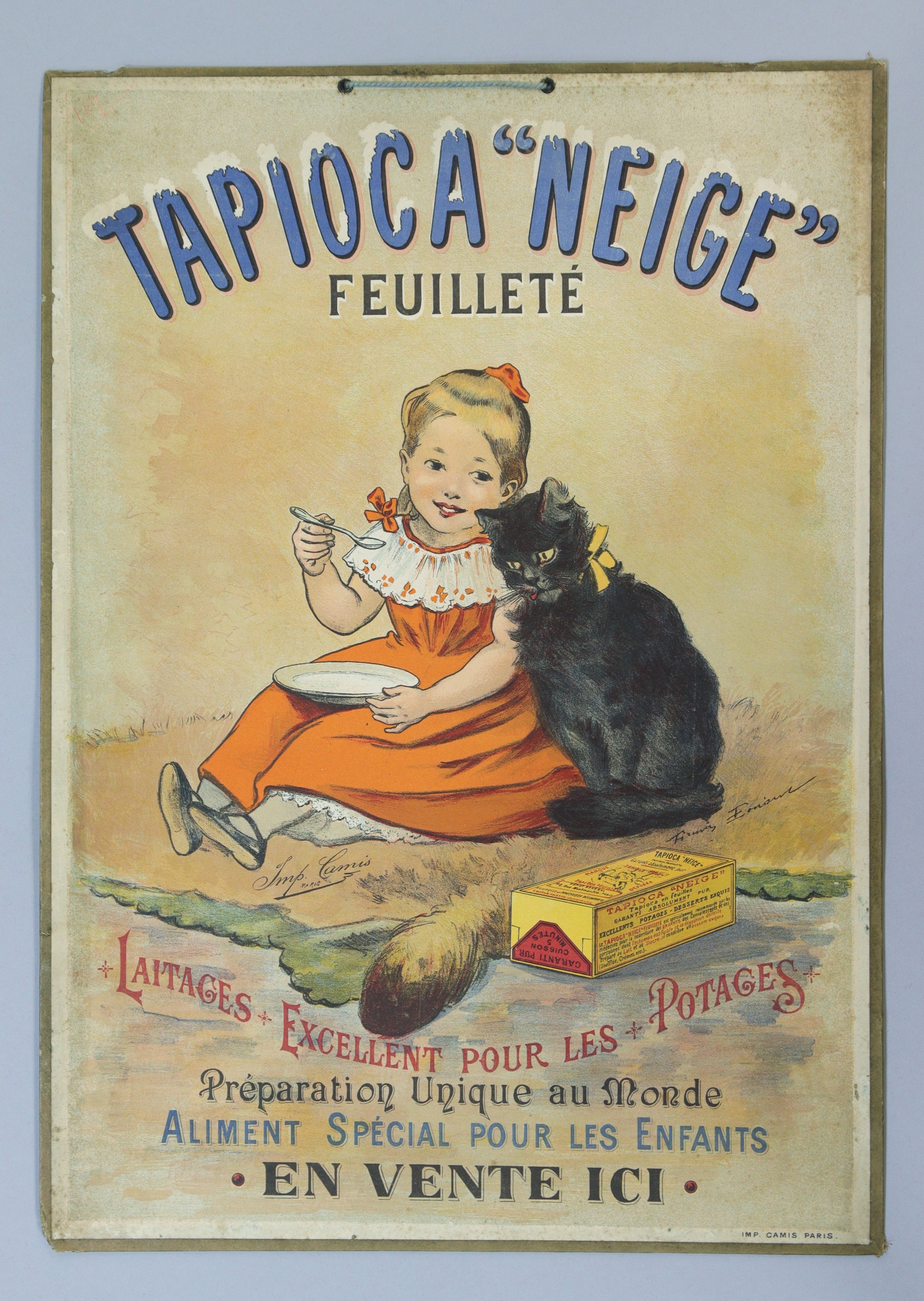 « TAPIOCA « NEIGE » feuilleté / Laitages - Excellent pour les potages / Aliment spécial pour les enfants ». Signée. Vers 1898. Env. 48 x 34 cm (rousseurs/salissures).
