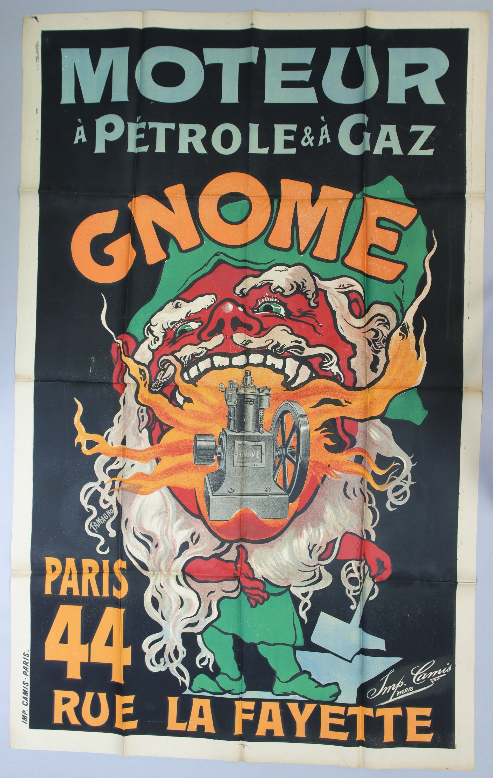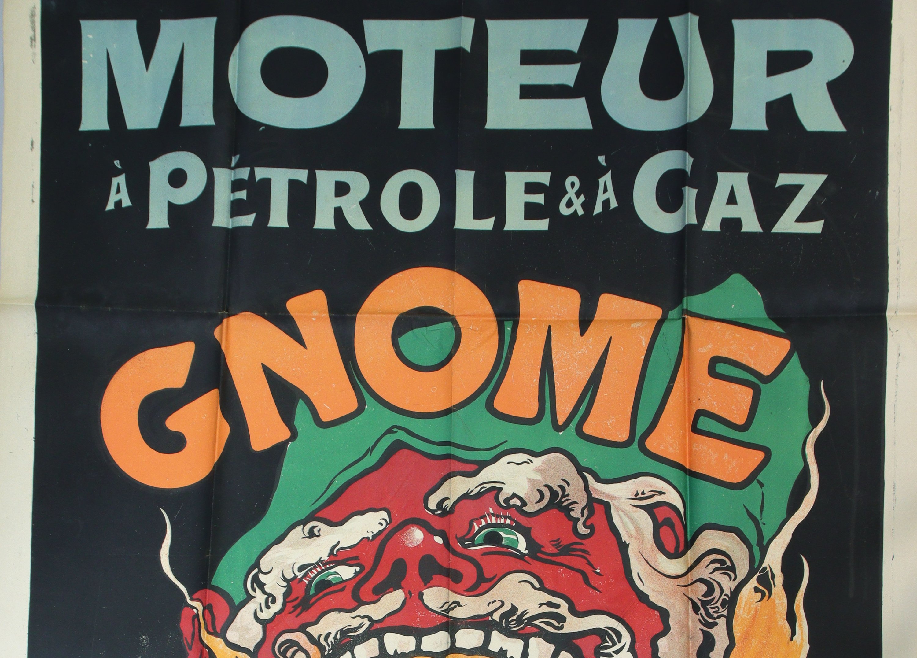 « Moteur à pétrole & à gaz / GNOME / Paris 44 rue Lafayette ». Signée. Vers 1896. Env. 197 x 123 cm (plis, petites déchirures) ;