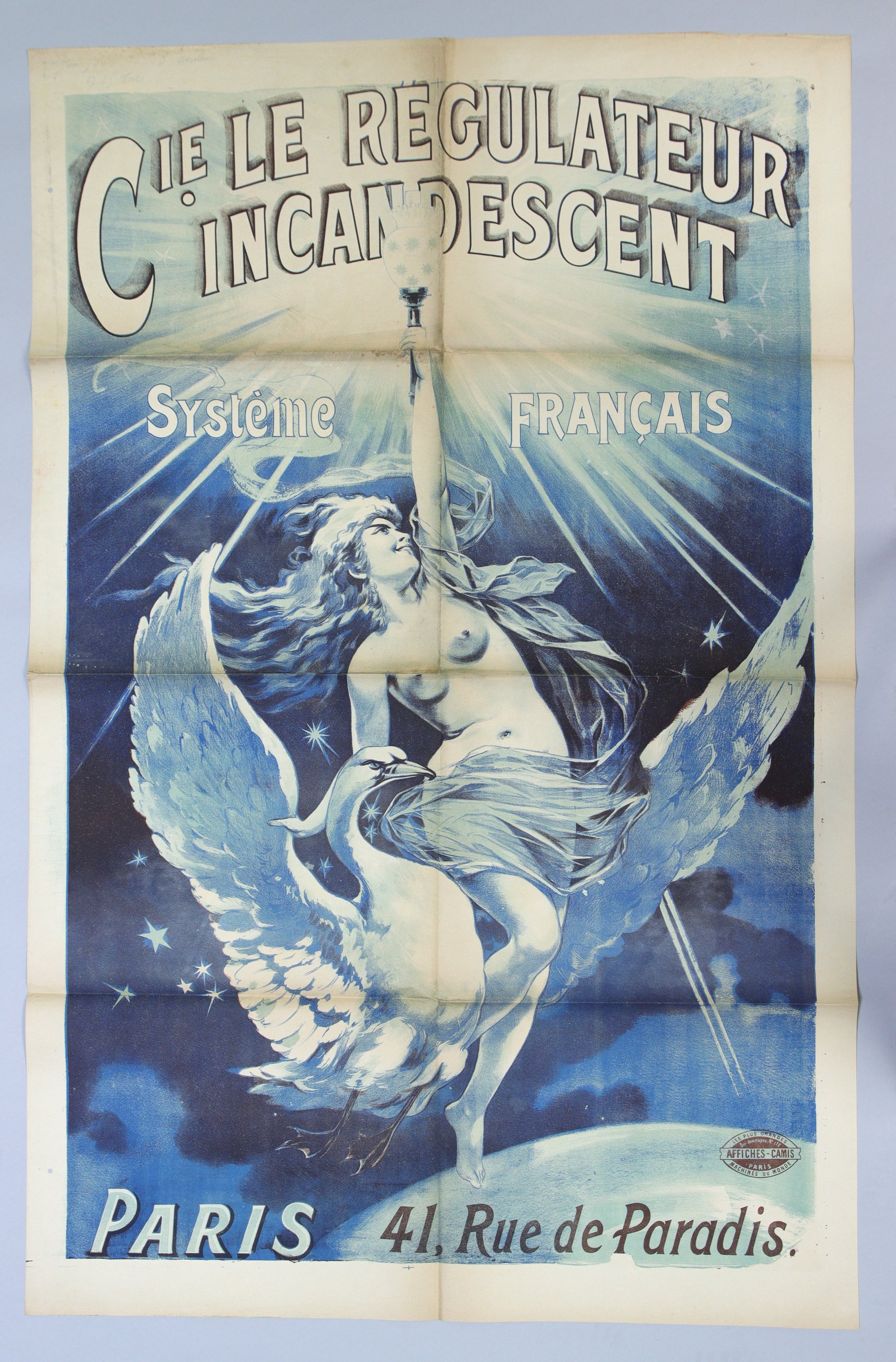 « Cie LE REGULATEUR INCANDESCENT / Système français / Paris 41, rue de Paradis ». Vers 1896. Env. 140 x 90 cm (plis, petites déchirures, rousseurs/salissures) ;