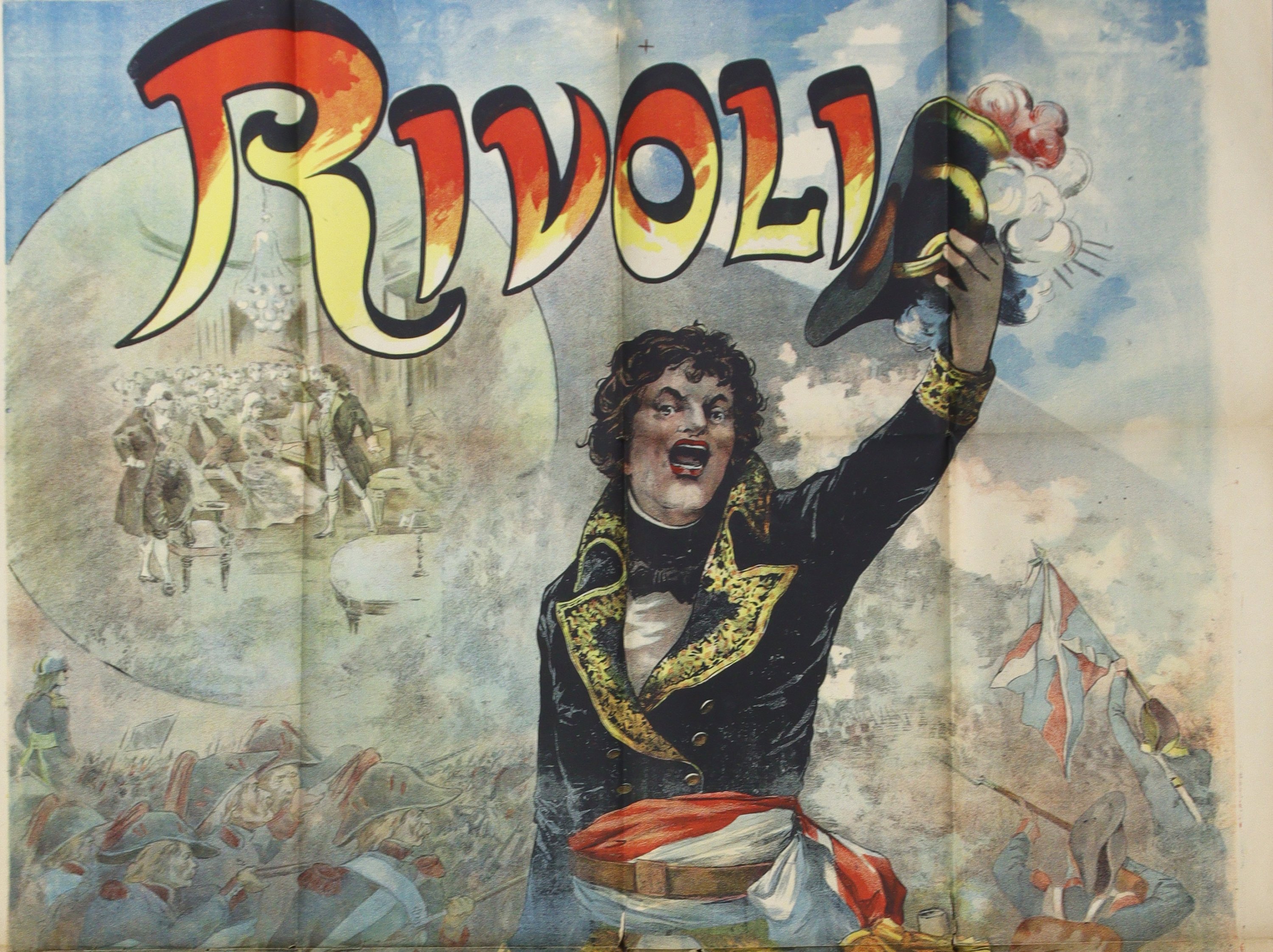 « Tous les soirs / RIVOLI / aux FOLIES DRAMATIQUES ». [1896]. Signée. Env. 200 x 124 cm (plis, déchirures, petits manques, rousseurs/salissures).