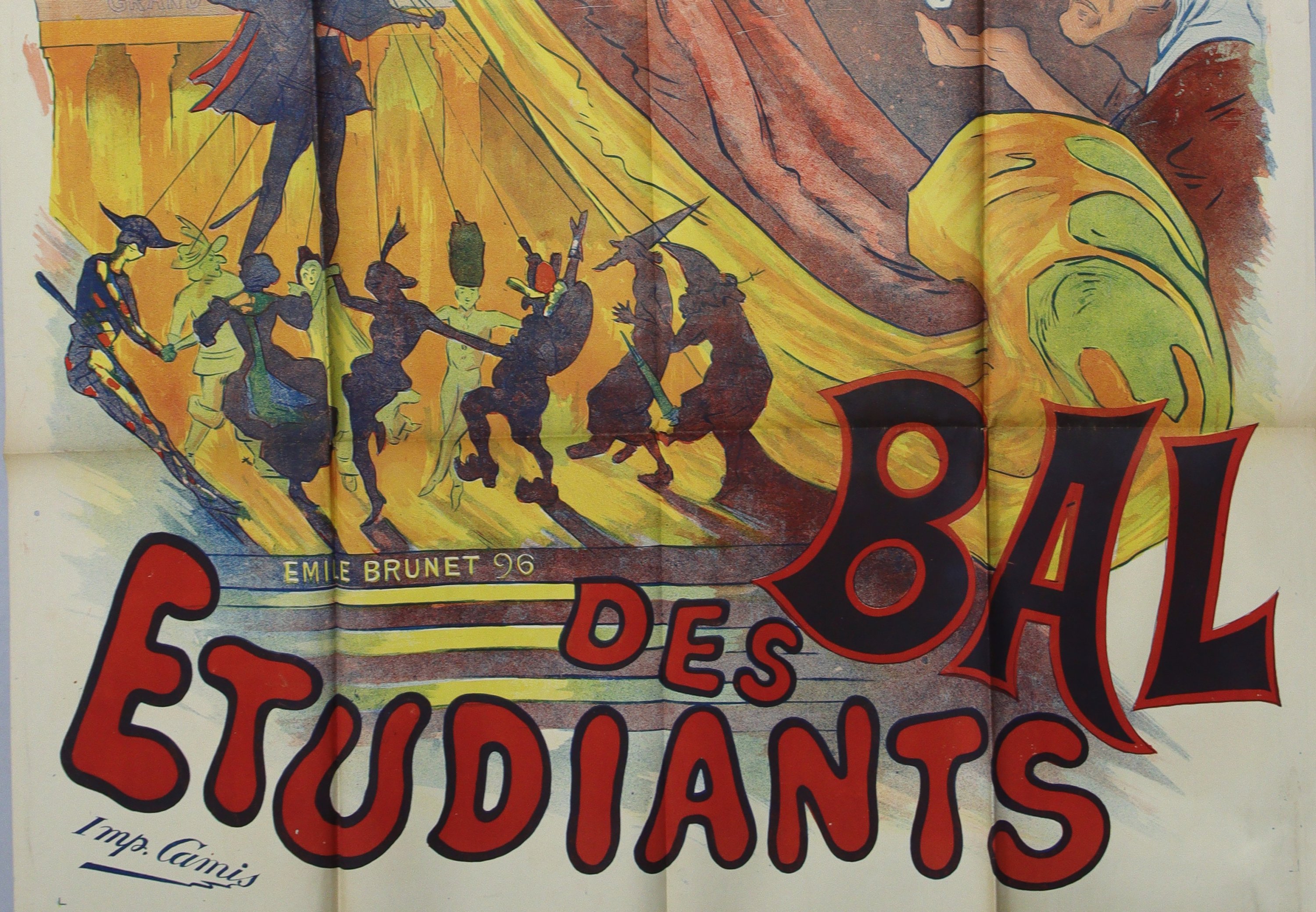 « BAL DES ETUDIANTS ». Signée et datée 1896. Env. 190 x 123 cm (plis, petites déchirures, rousseurs/salissures) ;