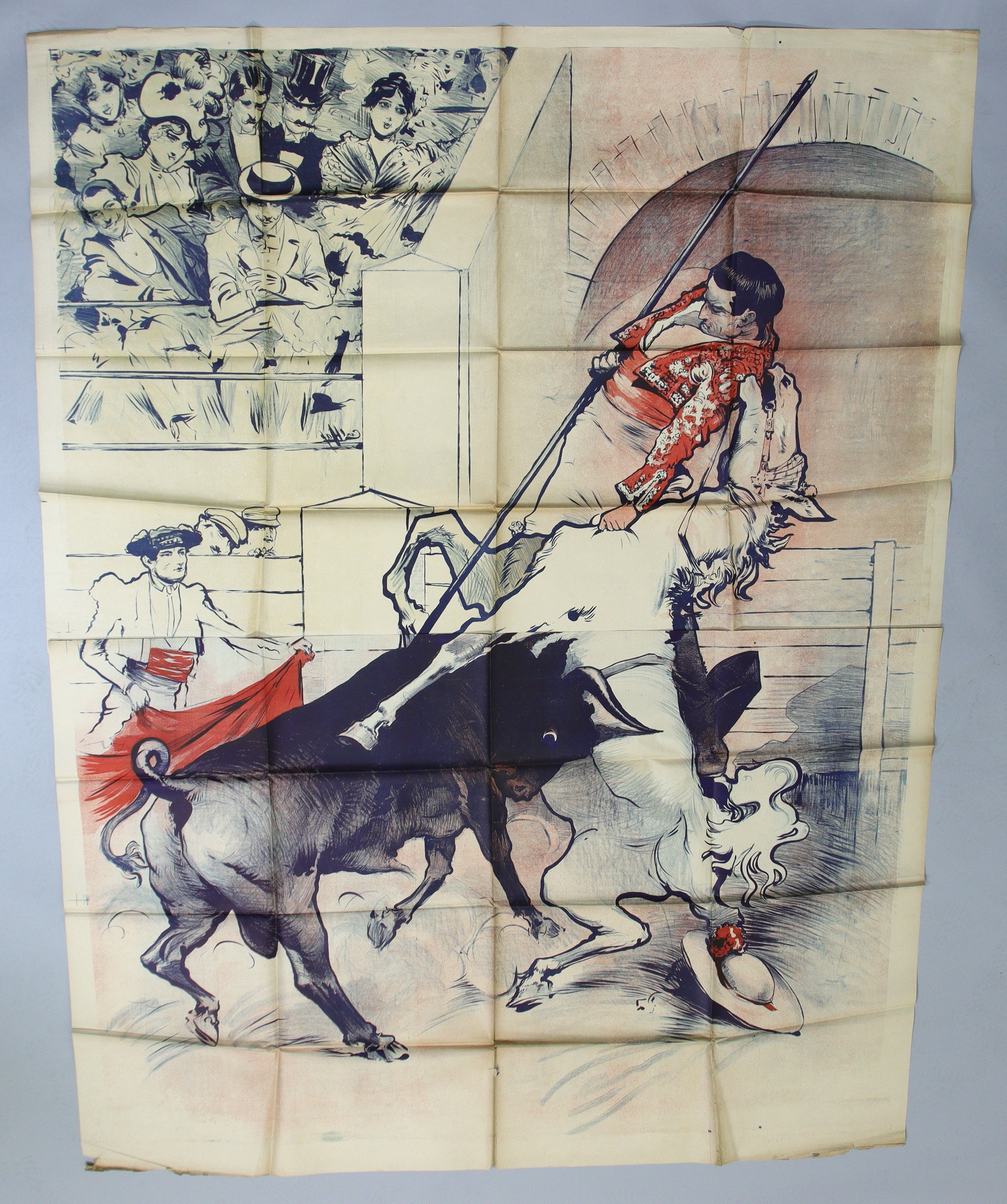 Tauromachie. Affiche avant la lettre. Vers 1898. Env. 190 x 123 cm (plis, petites déchirures, rousseurs/salissures).
