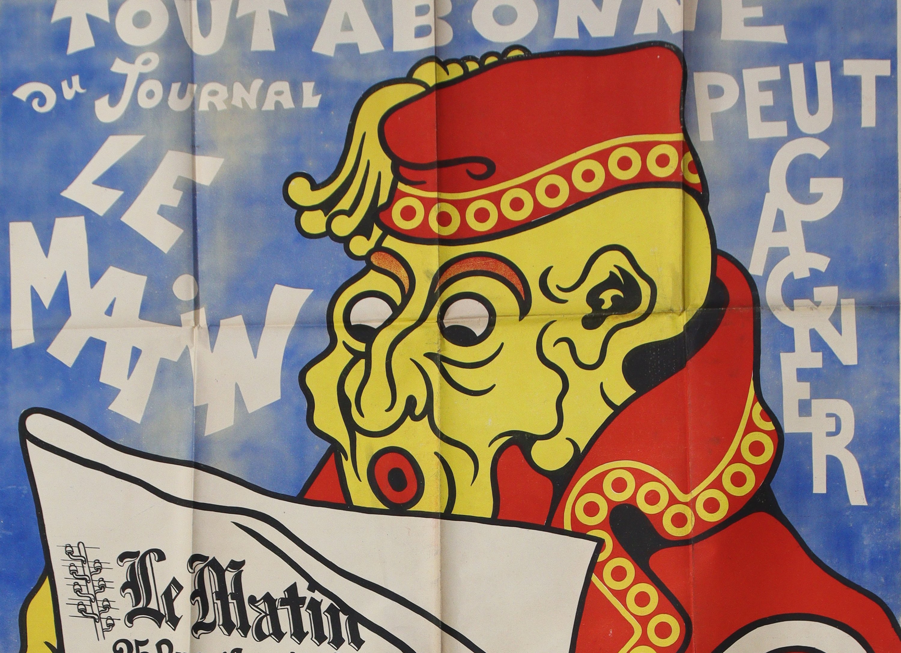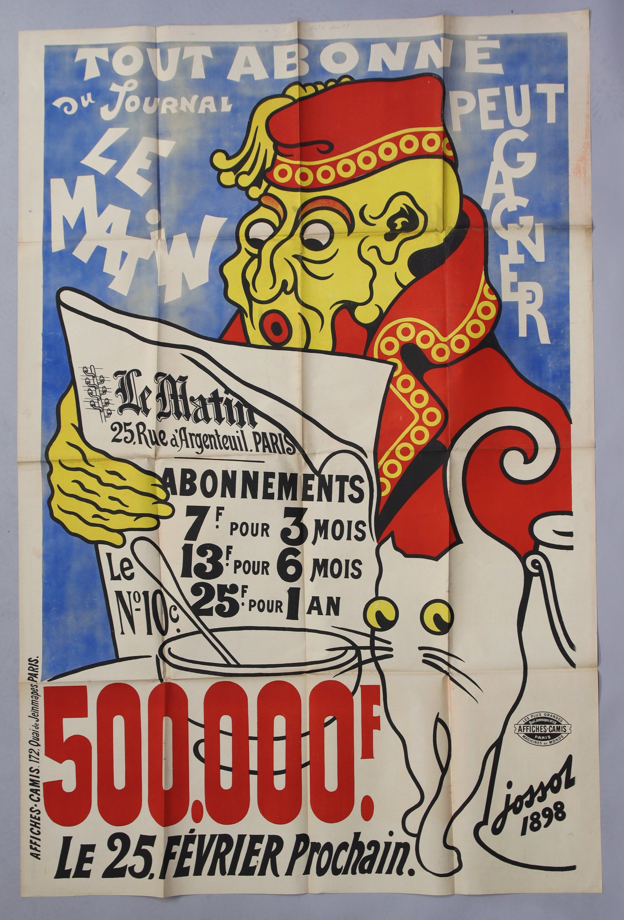 « Tout abonné du journal LE MATIN peut gagner jusquà 500 000 francs ». Signée et datée 1898. Env. 190 x 124 cm (plis, qqs rousseurs/salissures). Bel exemplaire ;
