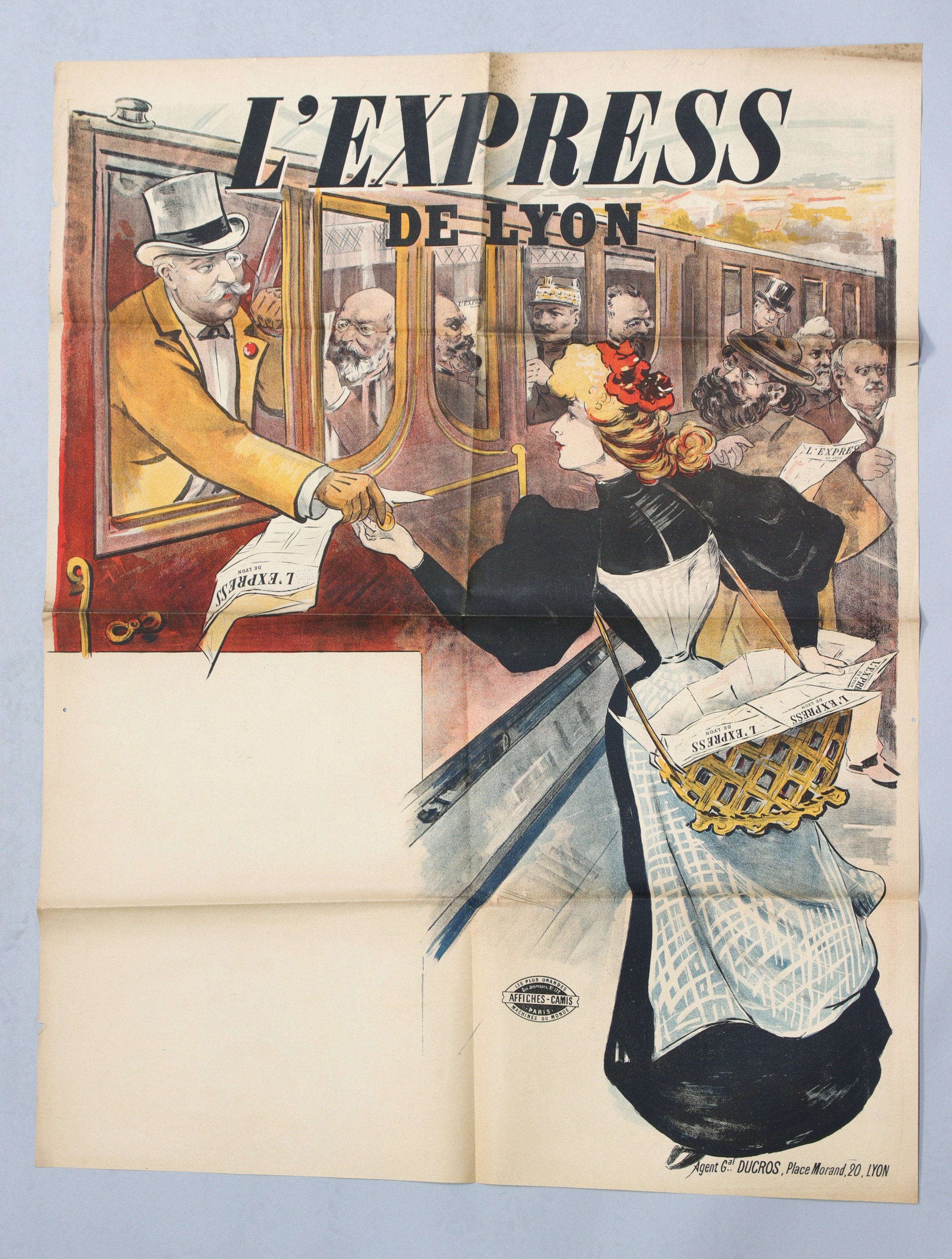 « LEXPRESS DE LYON ». Vers 1898. Env. 130 x 100 cm (plis, rousseurs/salissures) ;