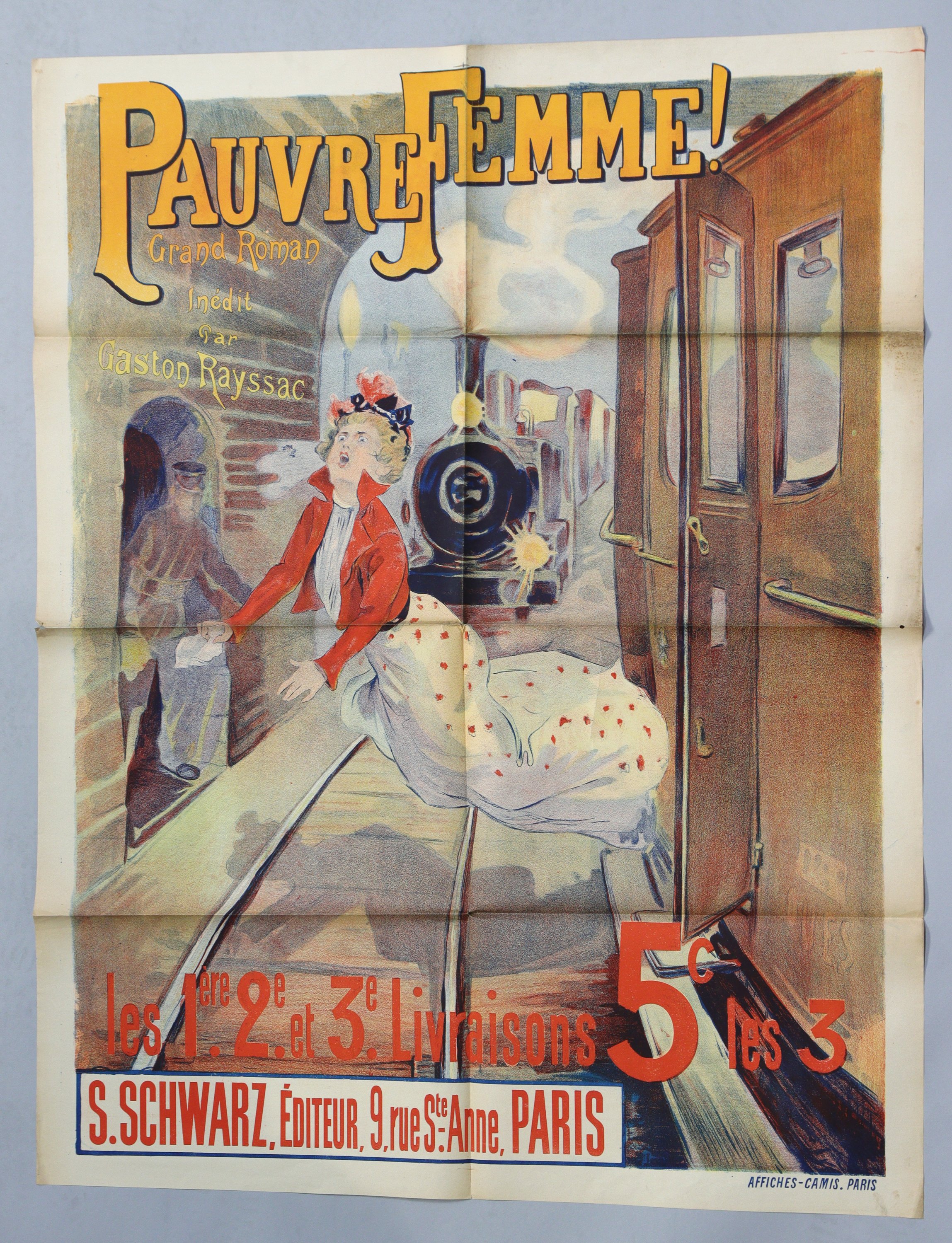 « PAUVRE FEMME! / Grand roman inédit par Gaston Rayssac ». Vers 1898. Env. 130 x 100 cm (plis, petites déchirures, rousseurs/salissures) ;