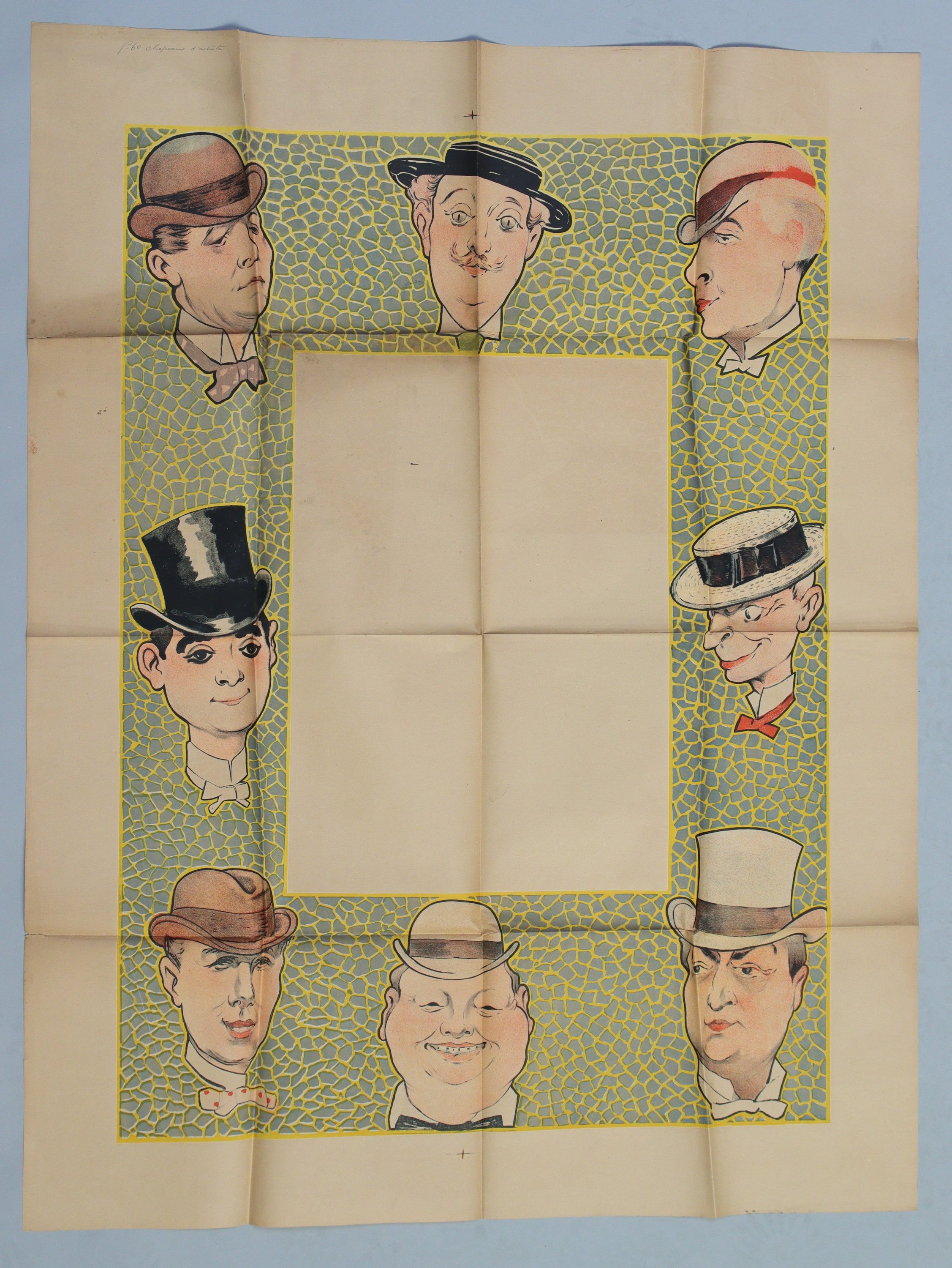 Chapeaux dartistes. Vers 1898. Env. 130 x 100 cm (plis, petites déchirures, rousseurs/salissures).