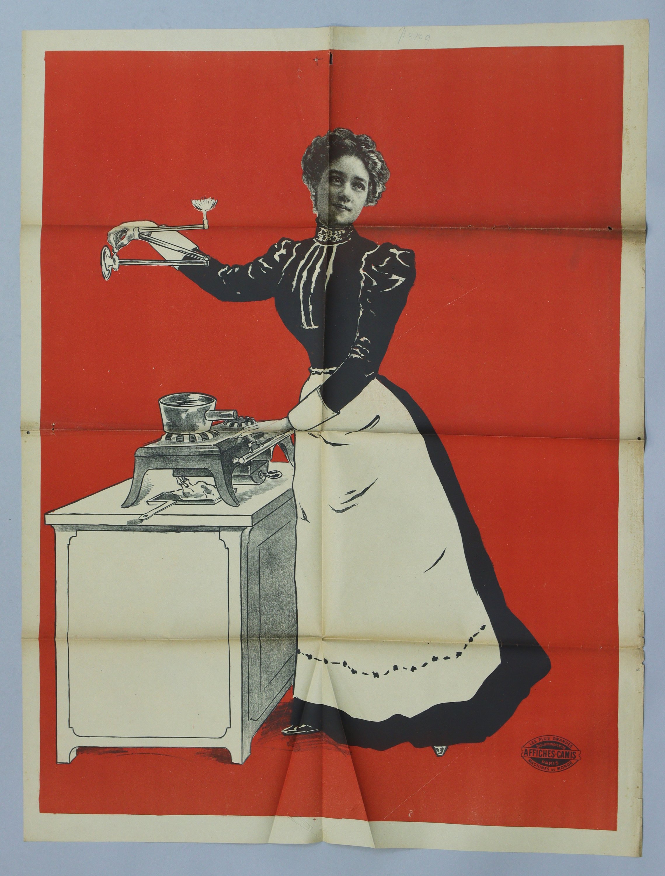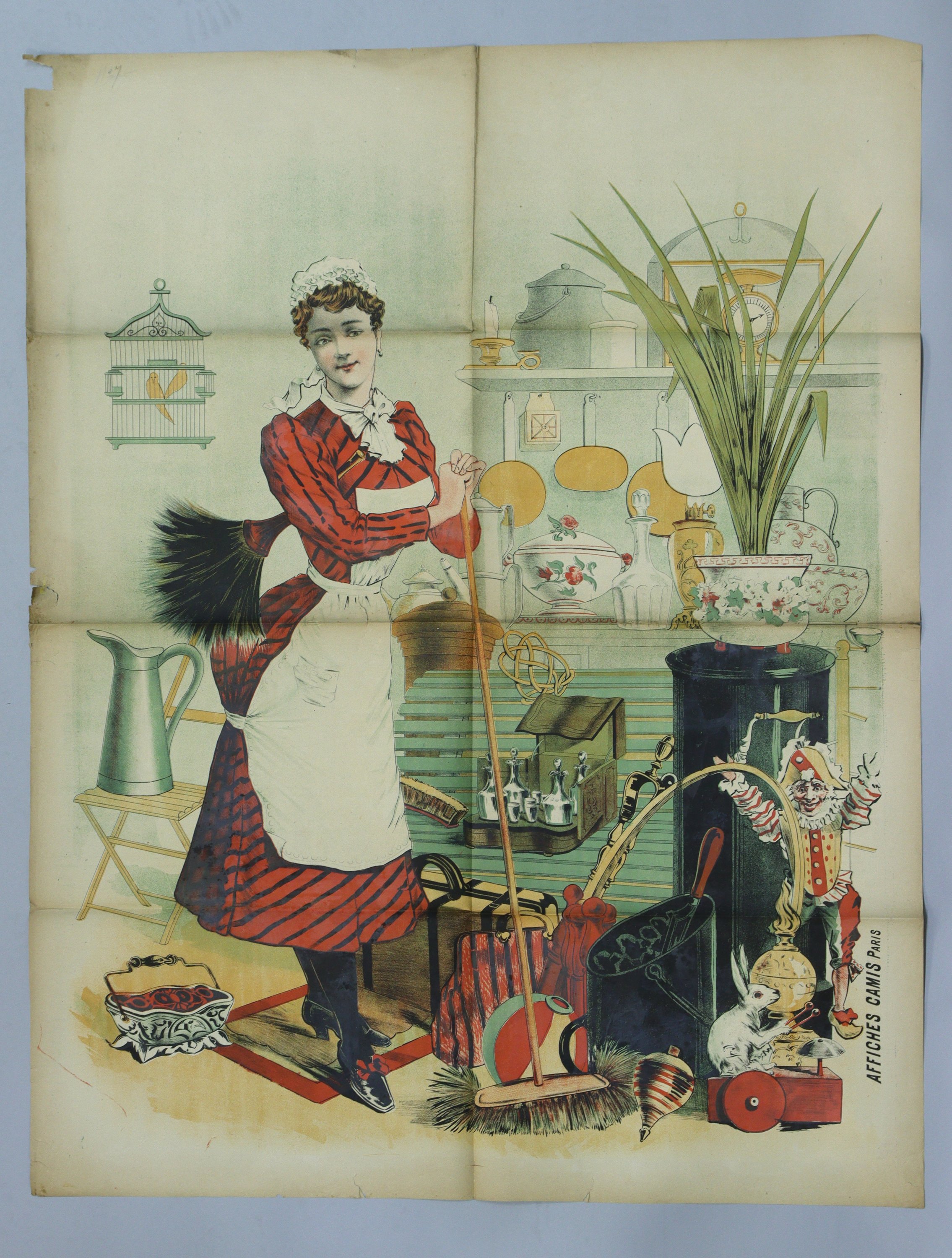 La ménagère. Affiche passe-partout avant la lettre. Env. 130 x 100 cm (plis, petites déchirures, rousseurs/salissures) ;