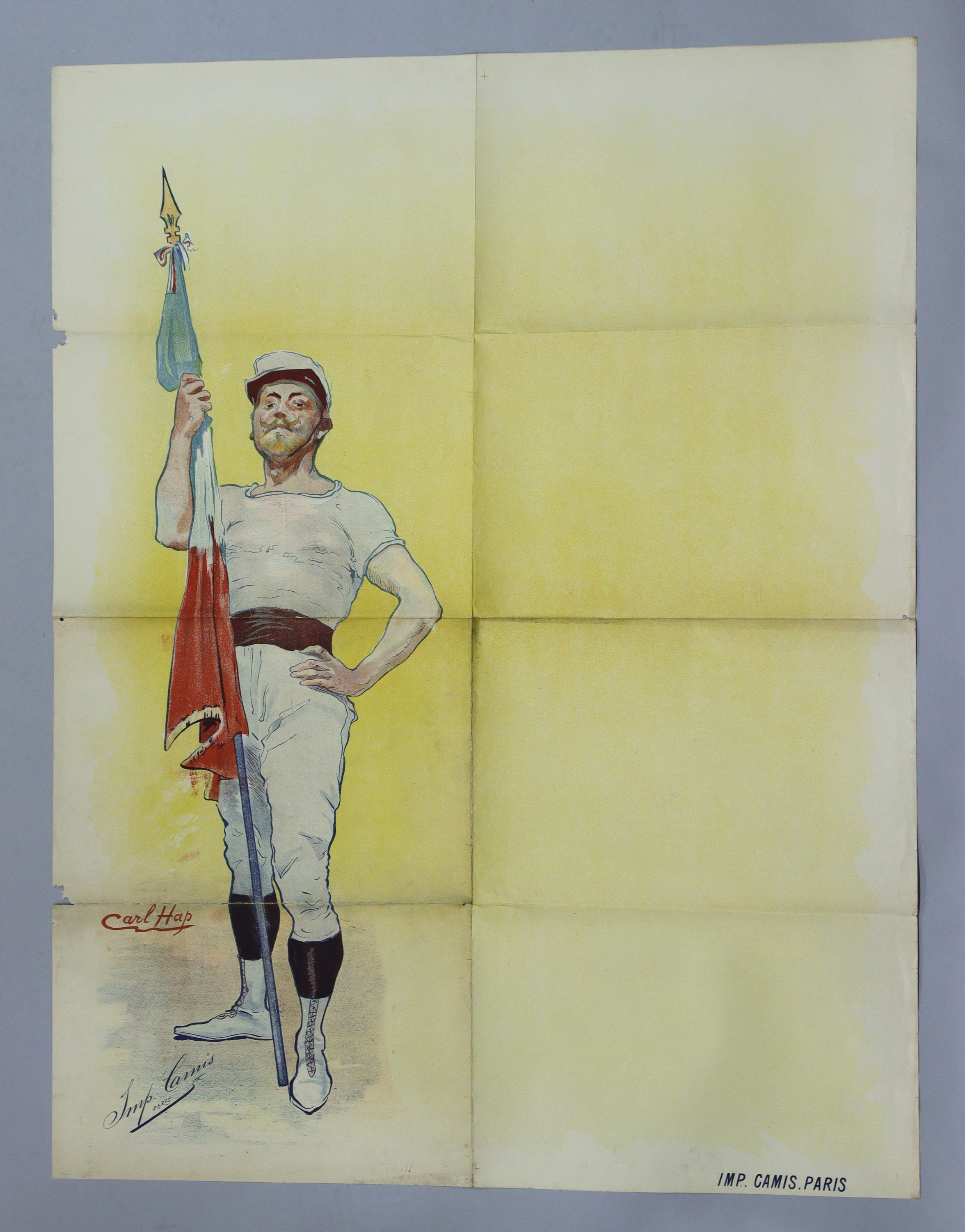 Le porte-étendard. Affiche passe-partout avant la lettre. Signée. Env. 130 x 100 cm (plis, petites déchirures, petit manque, rousseurs/salissures) ;
