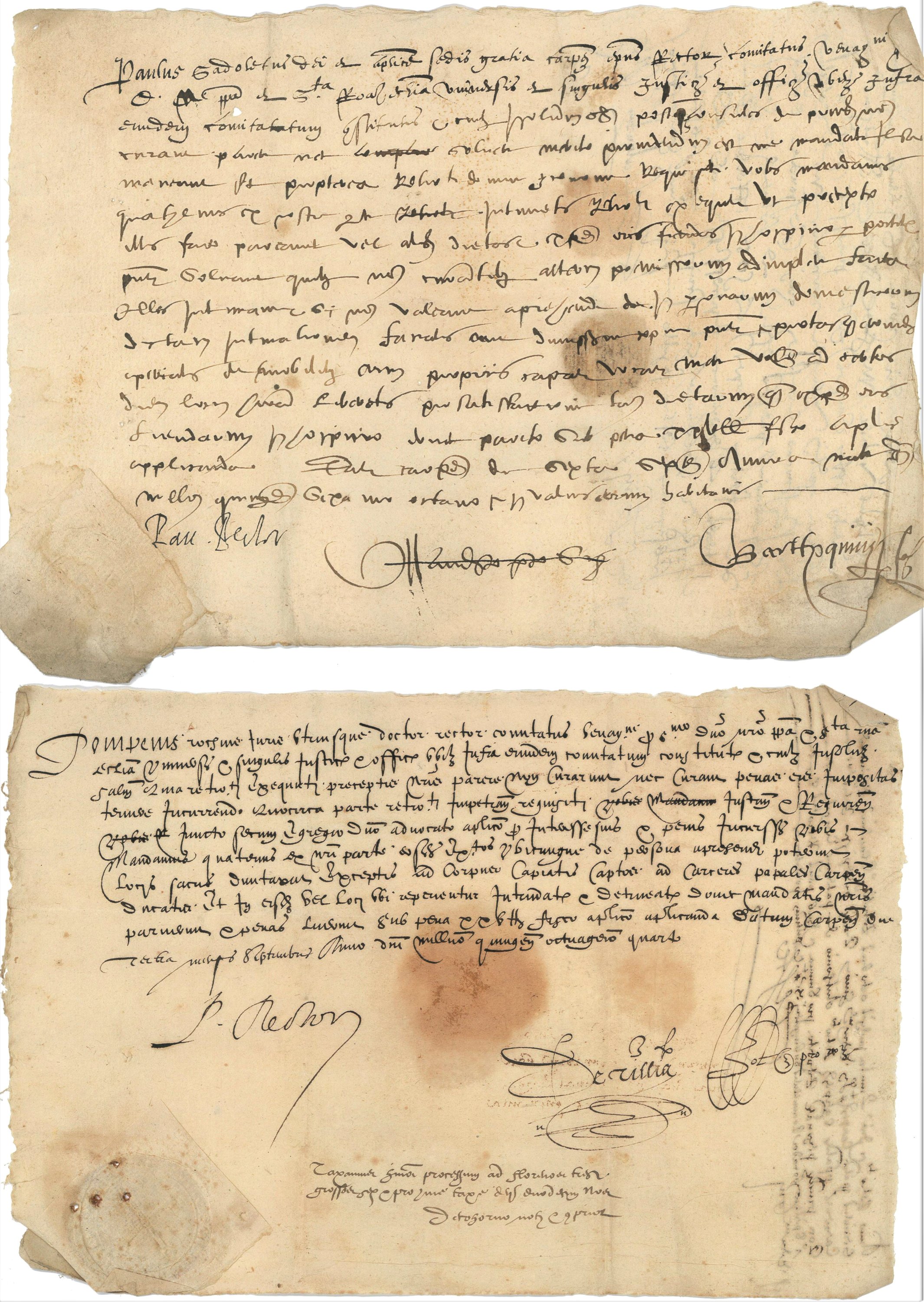 Lot de 30 pièces manuscrites sur papier, formats et états divers, signées par les recteurs, auditeurs ou administrateurs, certaines avec reste de sceau, dont P.S. des recteurs Paul Sadolet (1541-1547), Andrea Recuperati (1547-1553), François de Castellane (1555-1560), Gaspar du Pont (1572), Laurent de Tarascon (1561-1565), Jean de Roquelaure (1566-1567), Jacques Sacrati (1572 à 1577), Dominique Grimaldi (1577 à 1584), Pompée Rocchi (1584-1586), François Argolici (1586 à 1587), Pierre Hiérosme Léopardi (1594-1596), Achille Gimnasi (1593-1594), Horace Capponi (1598-1600), Jean de Tulle (1600-1605), Balthasar Gaddi (1609-1614), Cosme Bardi (1616-1621), César Racagna (1621 à 1627), Marius Buti (1652-1657), Jean Rasponi (1682-1684), Philipe Onofri (1689-1696), Flavio Barbarossa (1698-1702), François Marie Abbati (1702 à 1707), Bernard Guinigi (1707 à 1711), Jules César Zollio (1776-1785) ; etc.