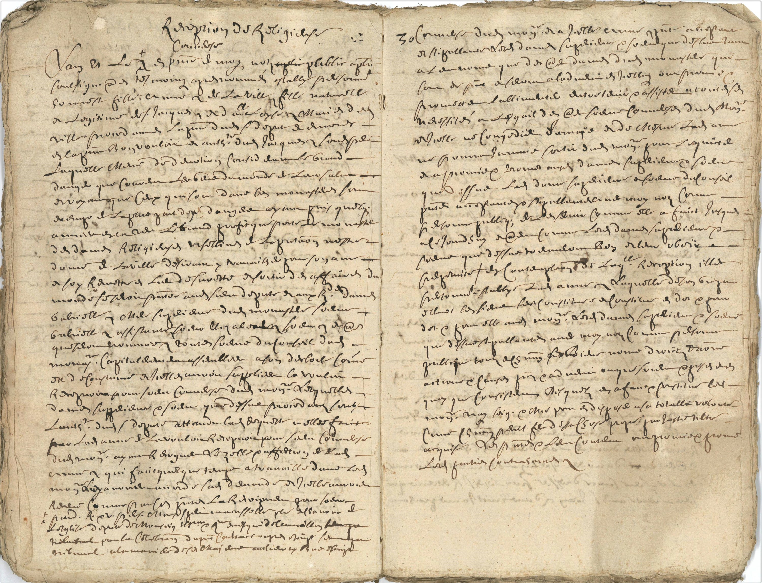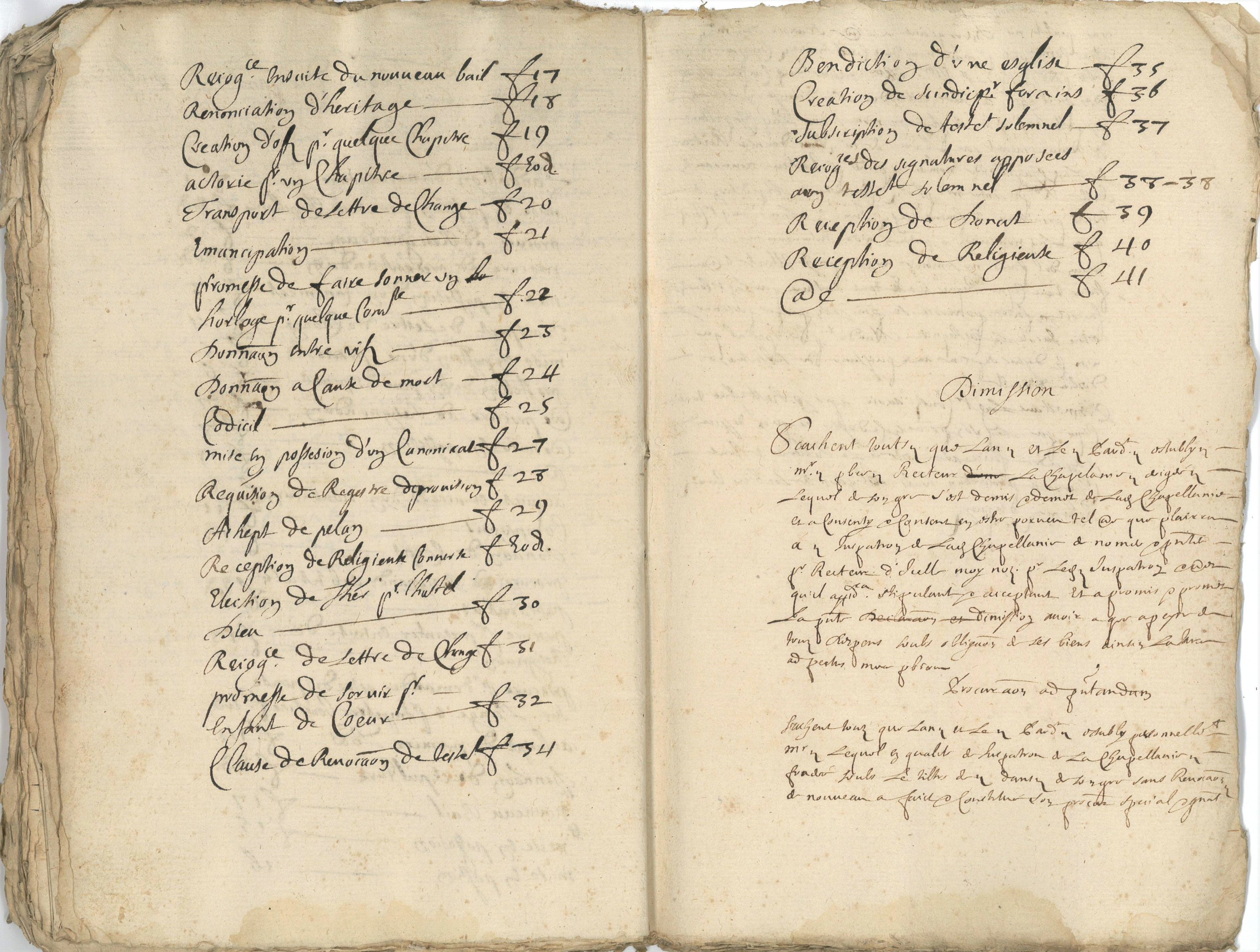 Cahier manuscrit à lencre brune, 98 pages in-4, seconde moitié du 17e siècle ; curieux et unique manuscrit anonyme qui relate différents événements religieux et civils qui se sont déroulés au sein de la communauté de lIsle sur Sorgues au cours du 17e siècle : fondation danniversaire au chapitre collégial, réceptions de religieuses au couvent des Ursulines, élection de trésorier pour lhôtel dieu, bénédiction de léglise des Ursulines, création dun syndic pour les forains, possession dun canonicat pour la collégiale Notre-Dame des Anges, etc. Chaque événement est titré mais non daté, textes en français et en latin, les pages sont foliotées et une table en fin de cahier.
