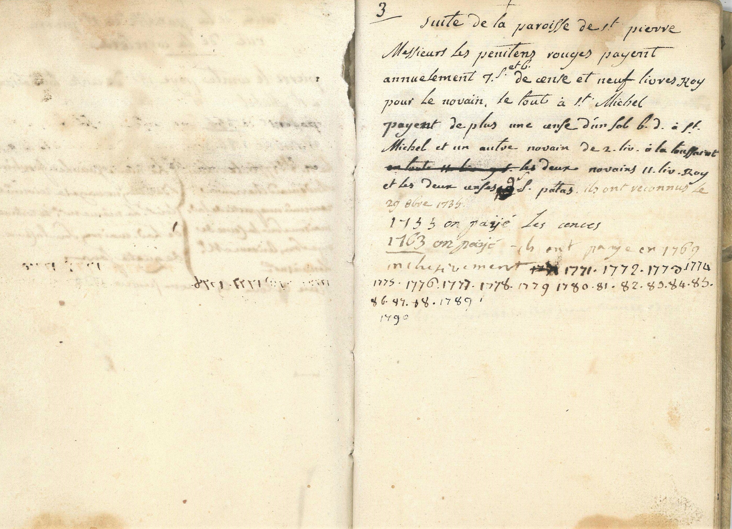 3 P.S., 1760 et 1779, Laure Gabrielle de Sade abbesse du monastère bénédictin de Saint Laurent dAvignon et tante du marquis de Sade ; quittances.