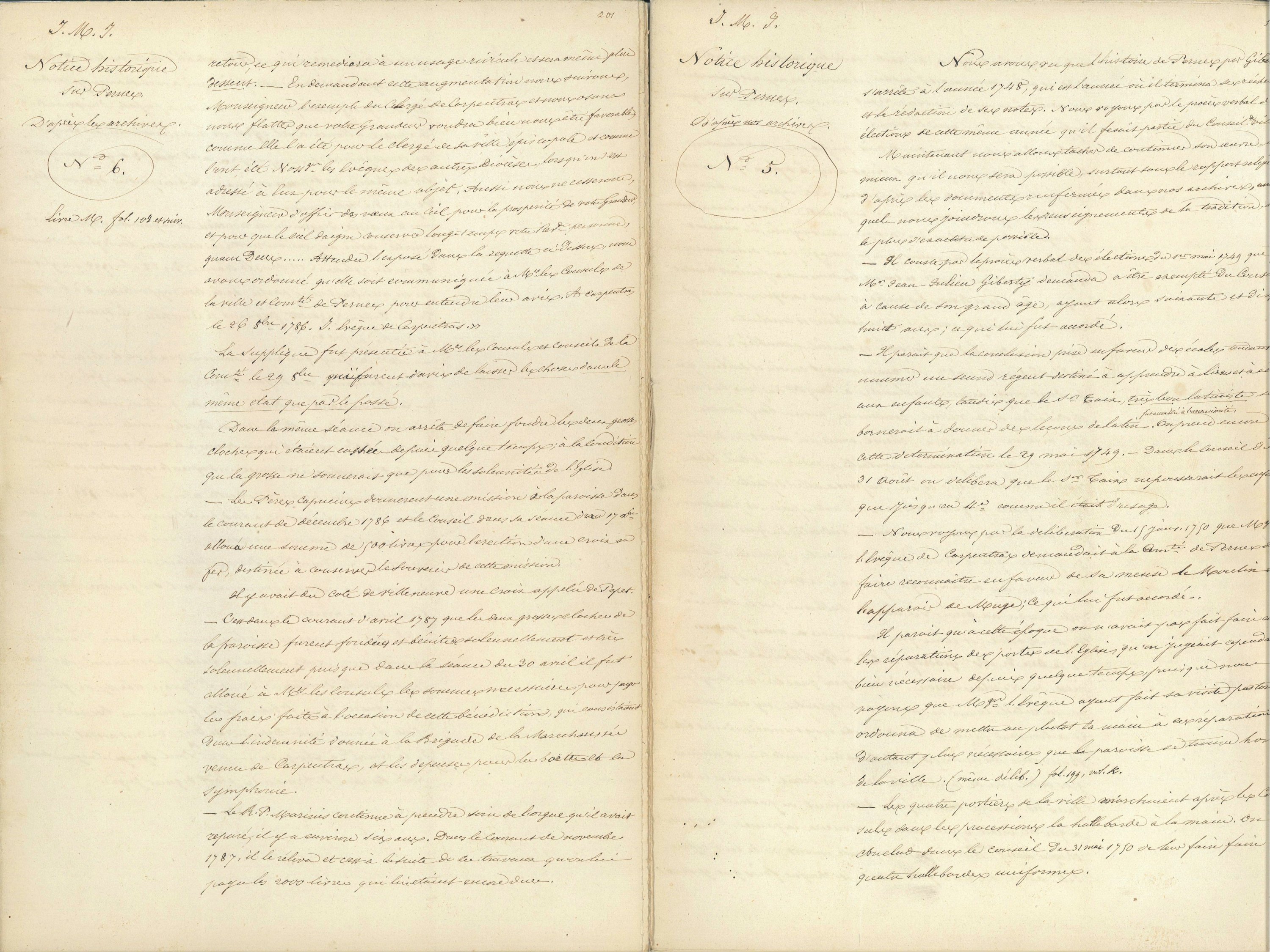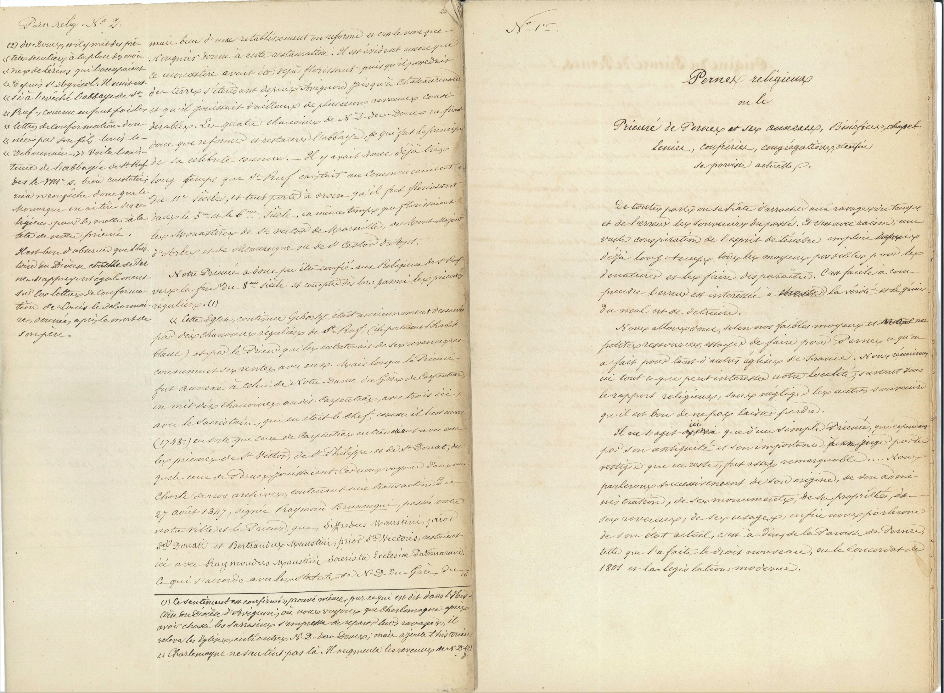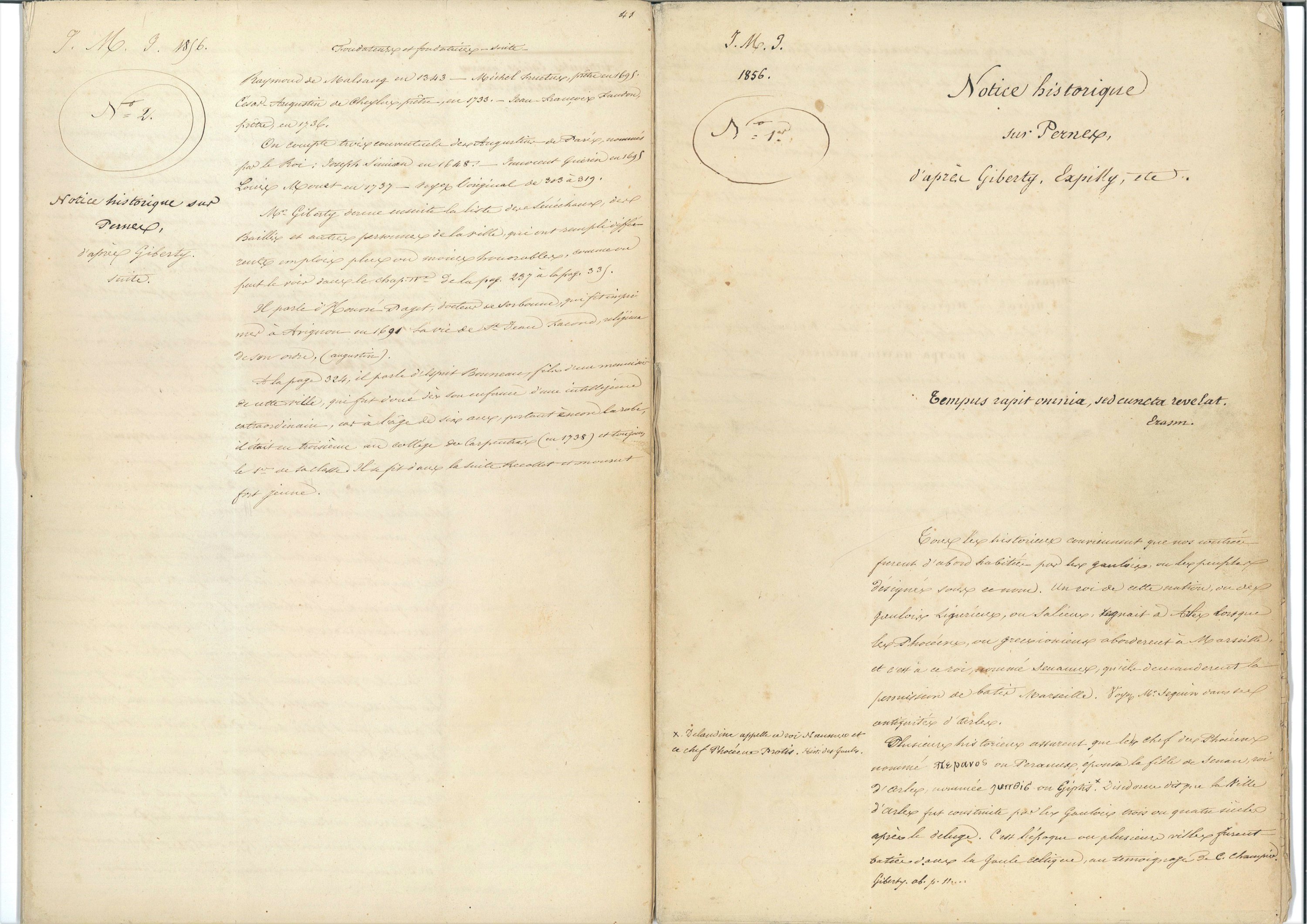 Réunion de 17 cahiers manuscrits in-4, + de 460 pages sur lhistoire de Pernes-les-Fontaines ; un travail inédit et non publié, écrit par un notable ou un membre du clergé habitant à Pernes (un membre de la famille de Centenier ?), vers 1856-1857, dans la continuité des travaux de Jean-Julien Giberti (1748) et avant la publication de labbé Constantin (1896).