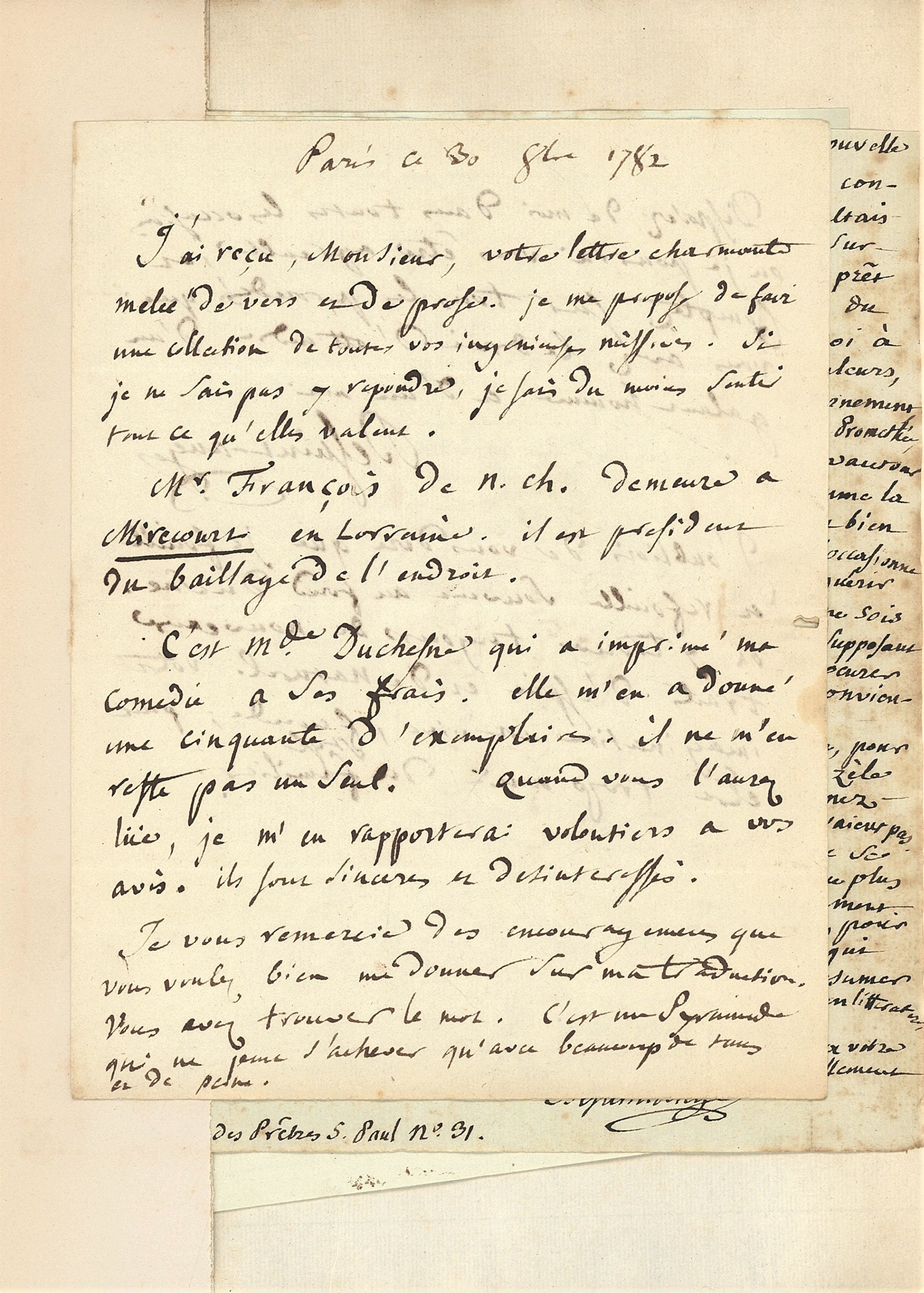 L.A.S., Paris, 30 octobre 1782, adressée à Félix Nogaret, écrivain, 2 pages in-8