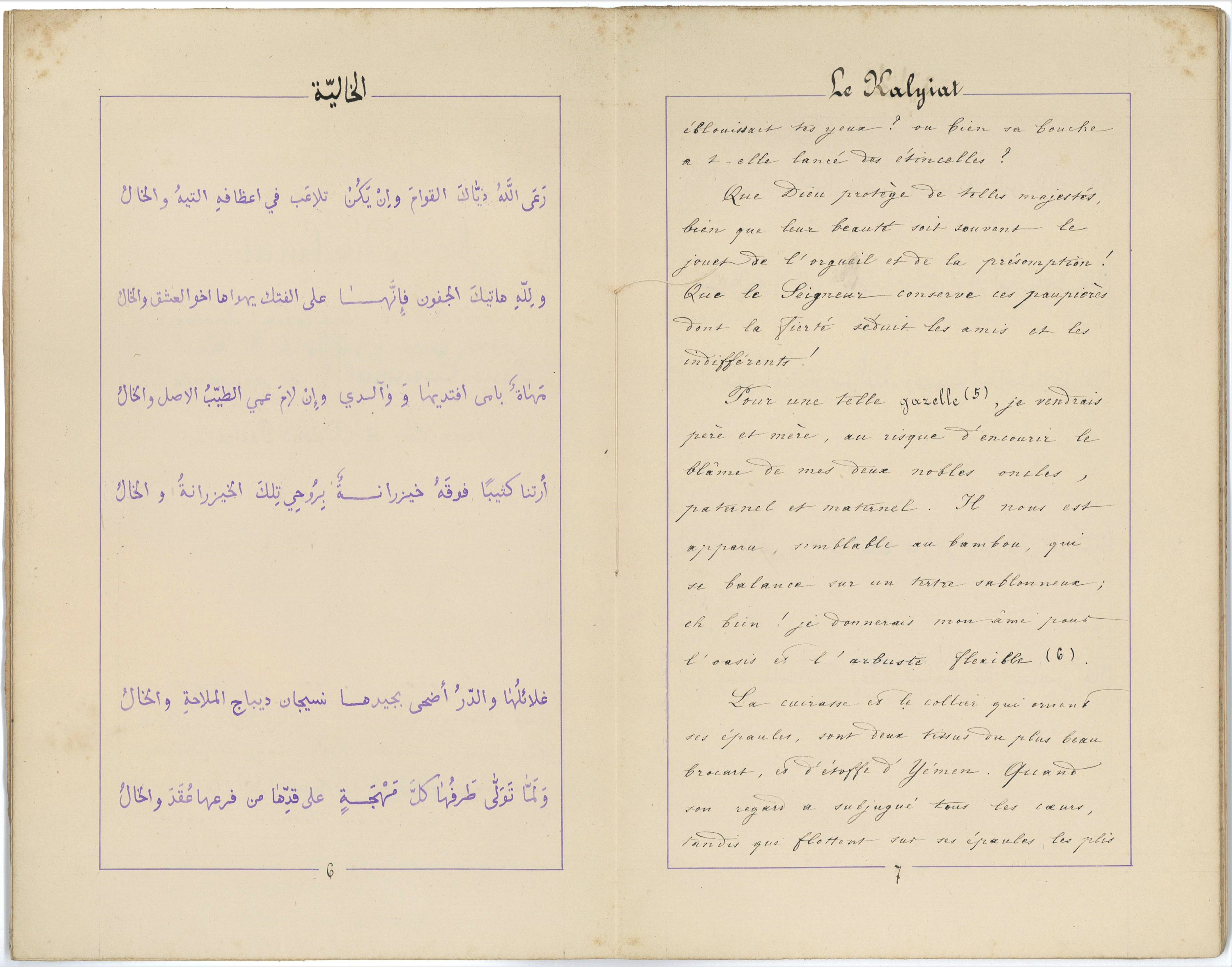 Le Kalyiat ou poème du Kal, extrait du Divan par Elie Faradj Basile, prêtre maronite dAlep, pubilé à Jérusalem en 1866 par les Franciscains ;