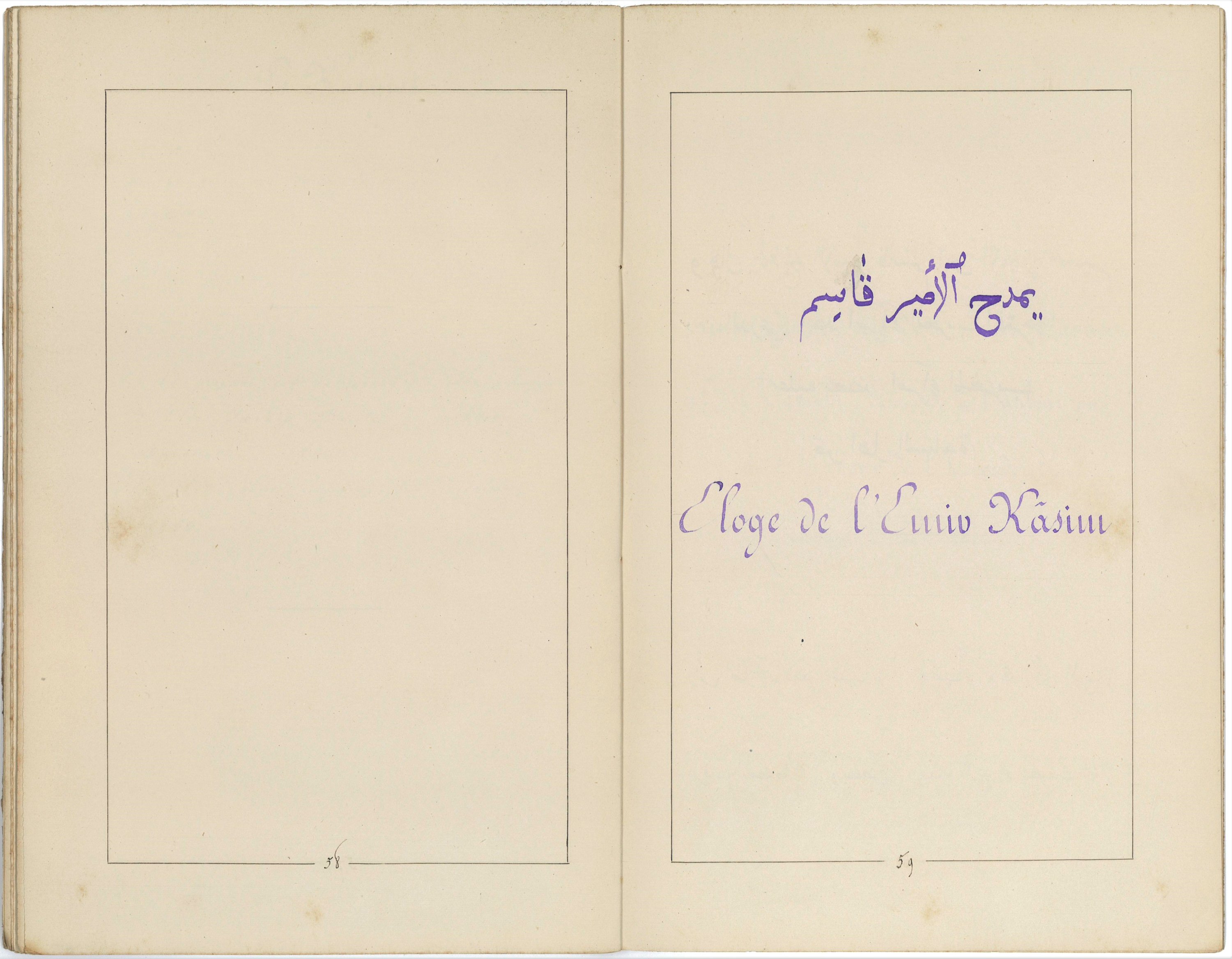 Eloge de lEmir Kâsim, extrait dun recueil du poète Nasif al-Yazigi (???????????), pubié à Beyrouth en 1864.