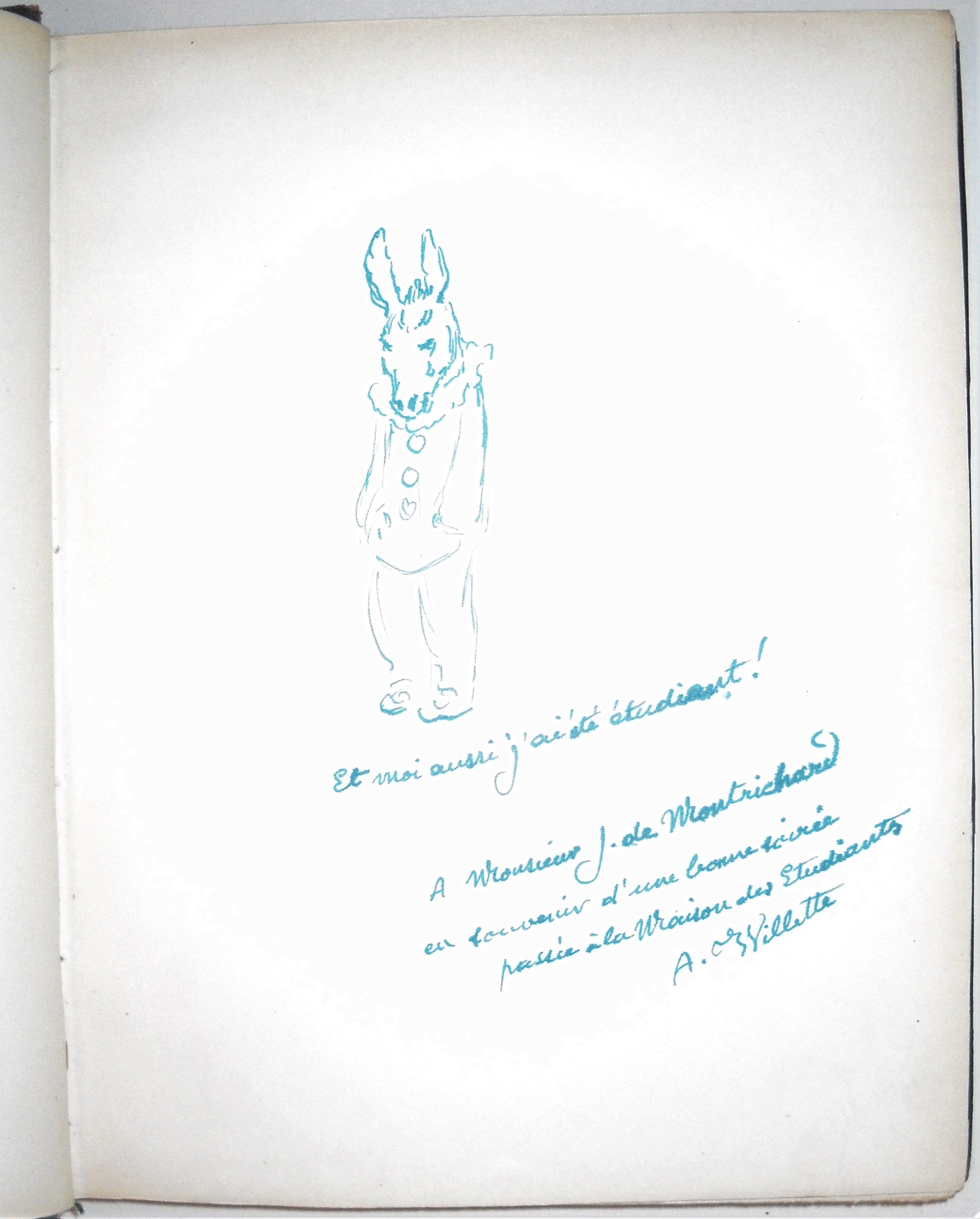 Superbe envoi manuscrit à la plume verte signé et illustré d’un croquis.